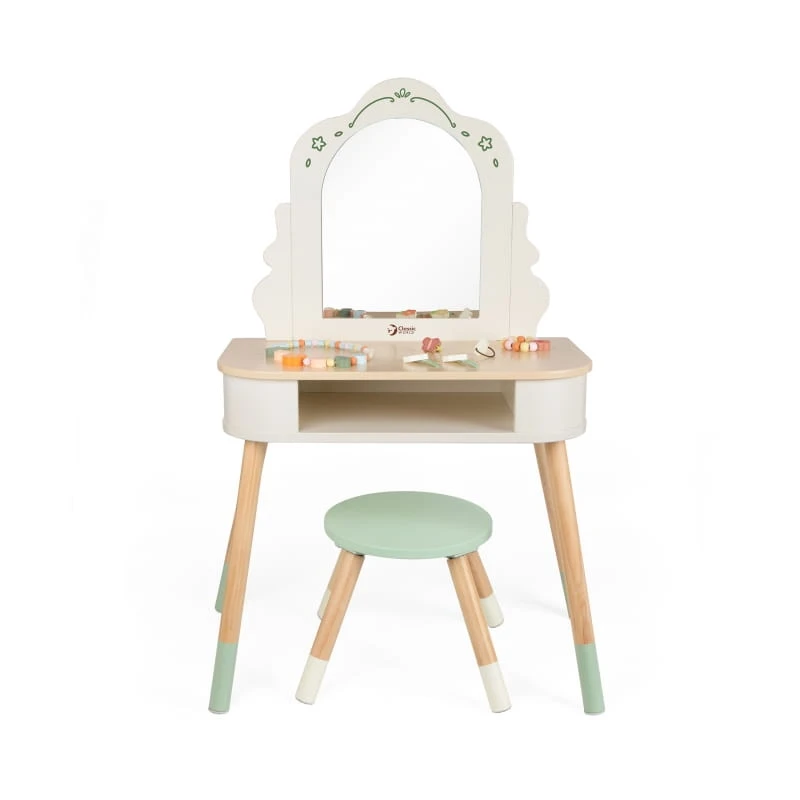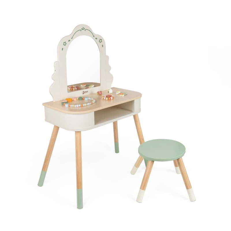 CLASSIC WORLD Drewniana Toaletka z Lustrem Krzesełkiem i Akcesoriami Pastelowa