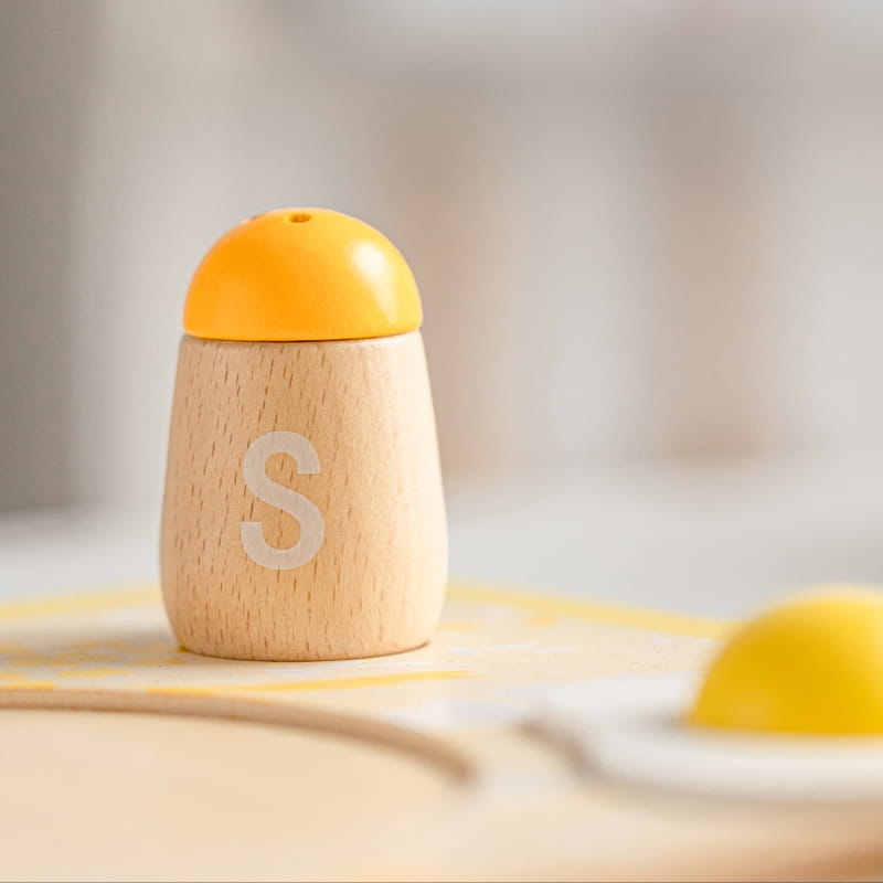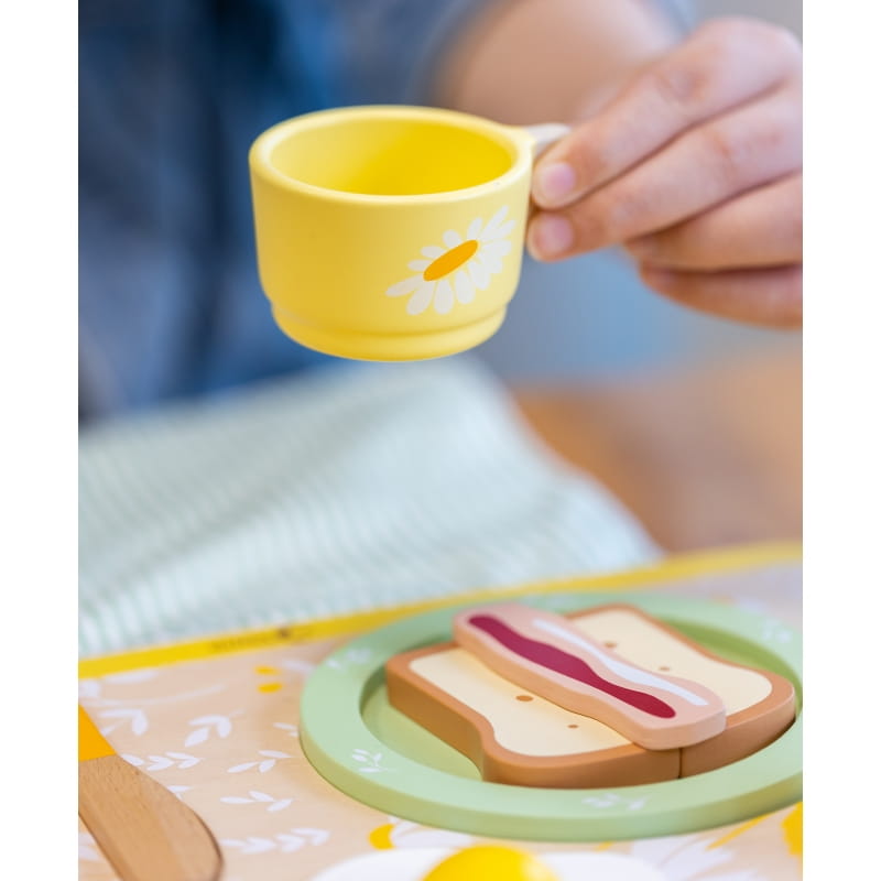 - - zestaw zawiera talerzyk, sztućce, kubek, sól, pieprz, jajko, tosty, plaster bekonu, serwetkę oraz tackę do serwowania,