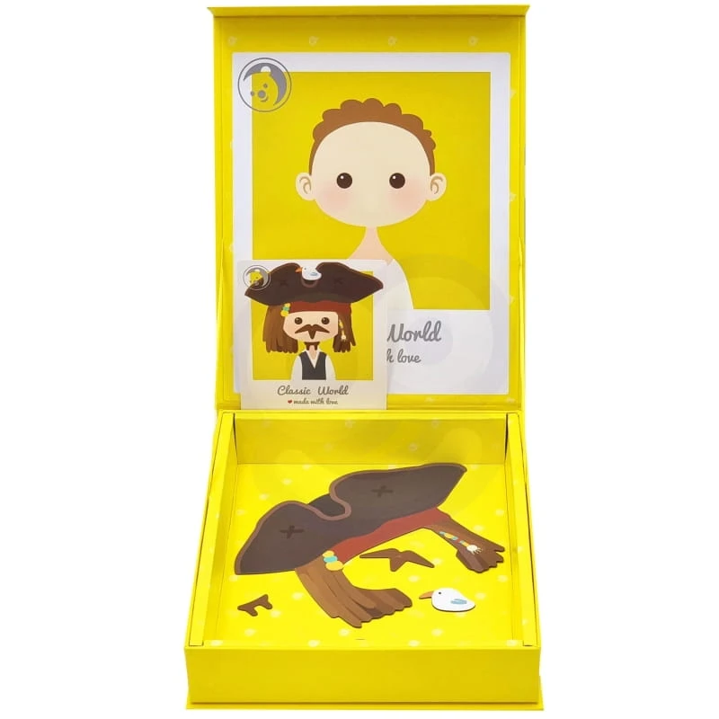 Układanka Magnetyczna od marki CLASSIC WORLD zajmie dziecko na długi czas. Zestaw zawiera aż 32 elementy w tym 8 kart ze wzorami chłopców w przebraniach do ułożenia. Dziecko może dowolnie łączyć elementy tworząc różne odlotowe modne kreacje i wyglądy. Mocne magnesy zapewniają, że żaden element nigdy nie spadnie. Opakowanie jest poręczne, dzięki czemu można je zabrać wszędzie. Zabawa rozwinie wyobraźnię i kreatywność Twojego dziecka.