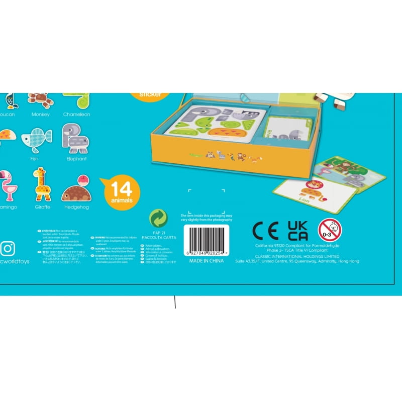 CLASSIC WORLD Układanka - to magnetyczny zestaw puzzli, który pomaga w nauce i rozpoznawaniu różnorodności zwierząt, które można znaleźć w lesie! Dzięki każdemu z 14 prezentowanych zwierząt, dziecko może układać karty na tablicy magnetycznej i tworzyć własne historie. Gra rozwinie wyobraźnię, zdolności motoryczne i obserwację dziecka. Świetny sposób na spędzenie czasu w domu i nauczenie się nowych rzeczy.