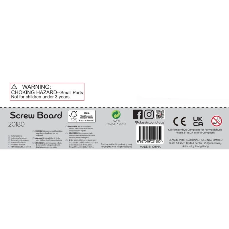 Drewniana tablica ze śrubkami od marki CLASSIC WORLD jest zabawką stworzoną z myślą o rozwoju dziecka poprzez dobrą zabawę. Gra polega na wkręcaniu śrubek do tablicy tworząc z nich różne kształty. Zestaw zawiera m.in. karty ze wzorami, które dziecko może wykonać w zabawie np. "na pamięć" razem z rodzicem.