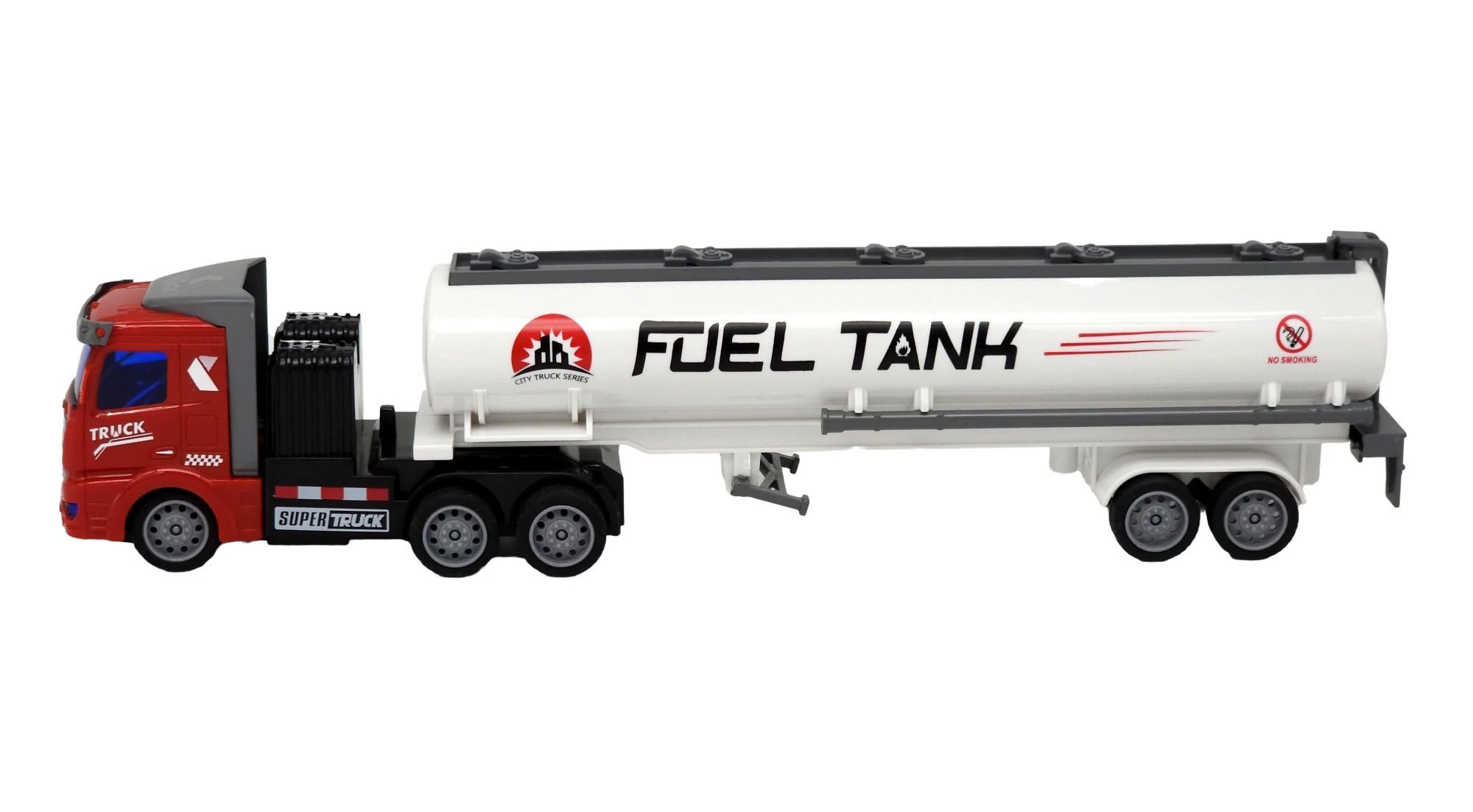 Ciężarówka z przyczepą w formie cysterny wiernie odwzorowuje prawdziwy pojazd. Na naczepie ciężarówki znajdują się realistyczne grafiki dzięki czemu pojazd prezentuje się bardzo okazale. Z całą pewnością zabawka zachwyci wszystkich małych miłośników motoryzacji, sprawiając im sporo radości.