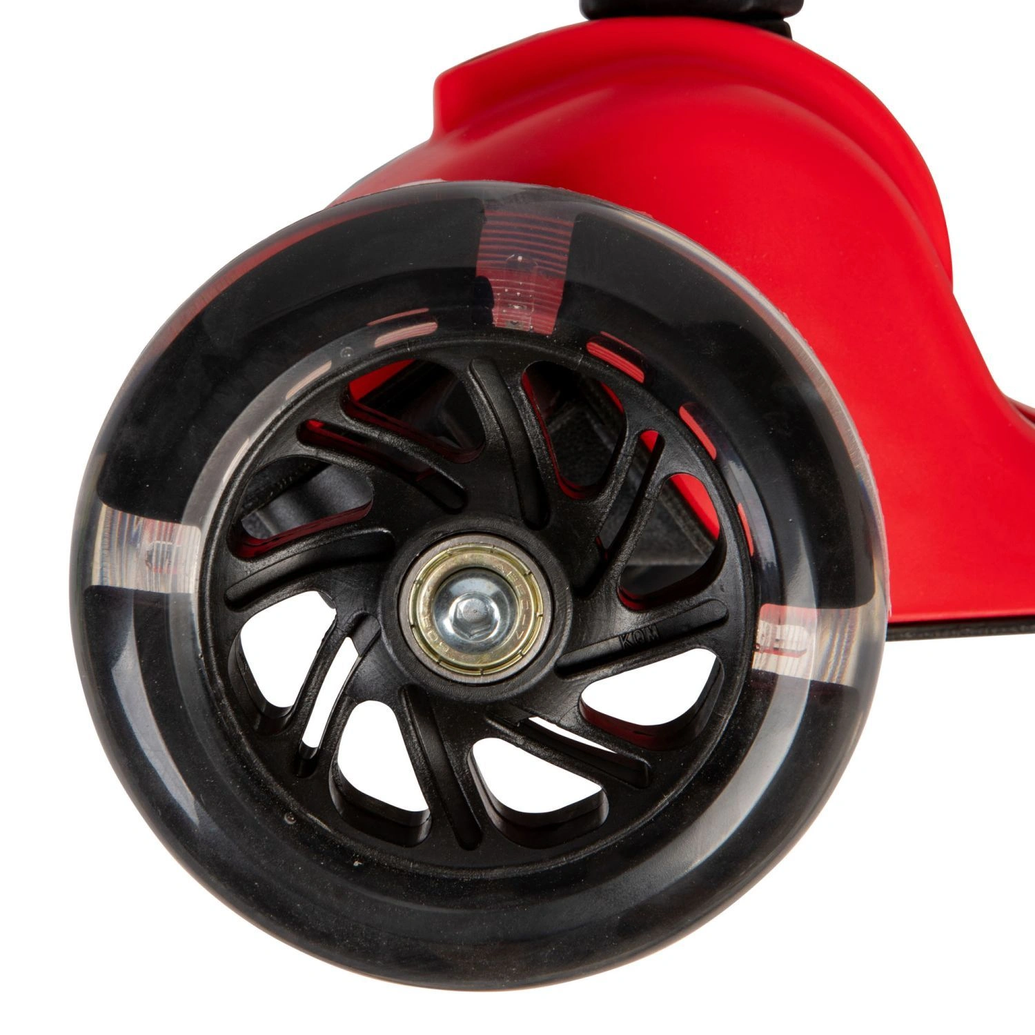 Czerwona balansowa hulajnoga składana trójkołowa ze świecącymi kołami LED