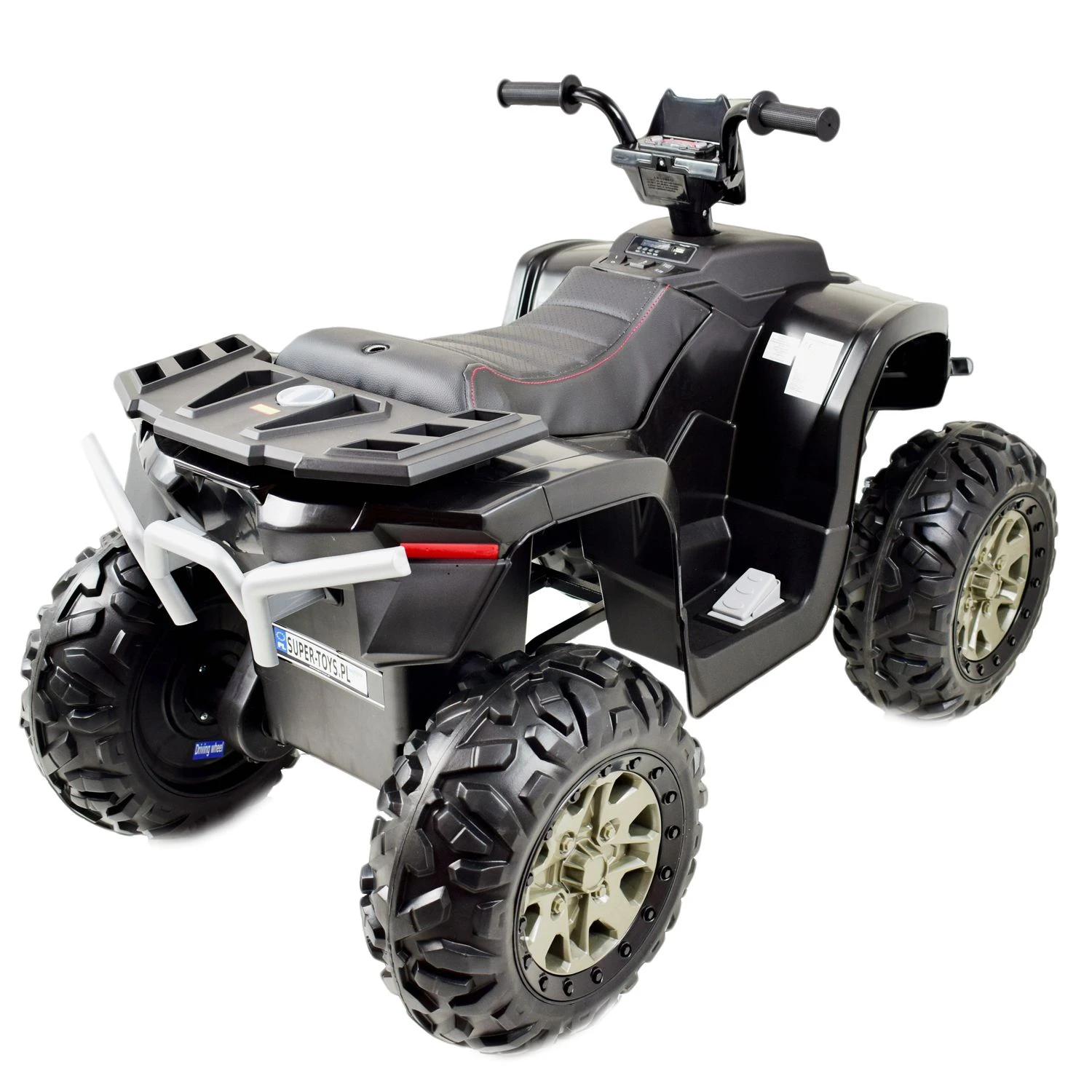 Wygląd quada przypomina prawdziwe pojazdy z tej grupy. Duże koła zapewniają komfort jazdy, a wygodne siedzenie wygodną podróż.