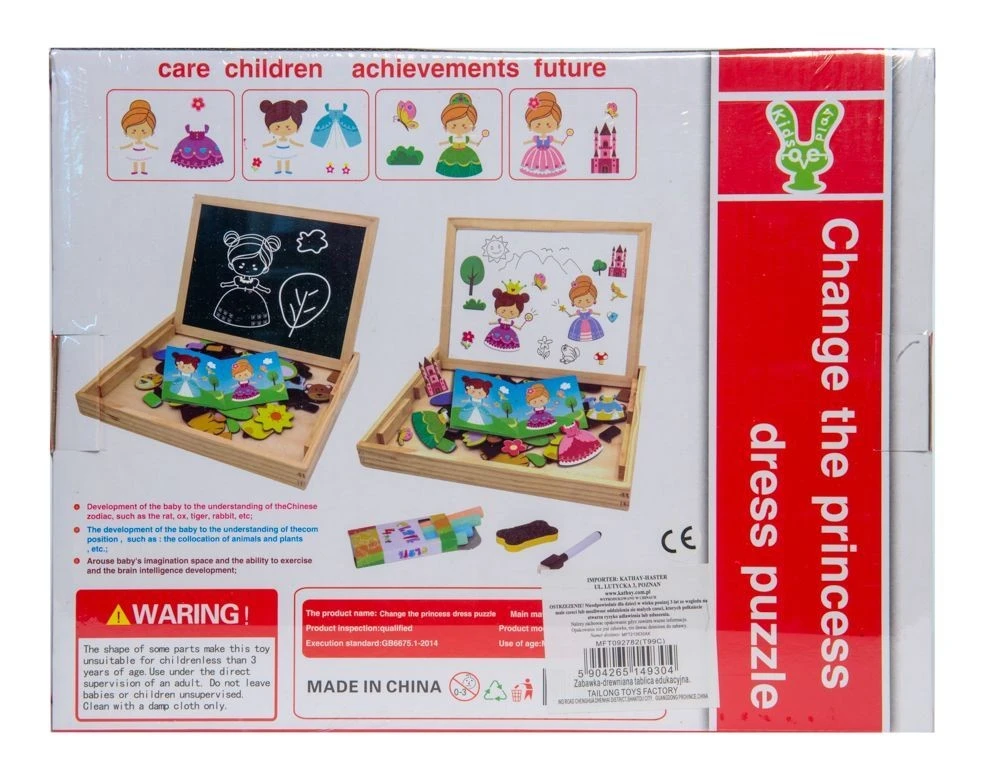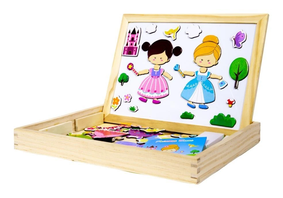 - dwustronna tablica wraz z drewnianą skrzyneczką do przechowywania m.in. magnesów