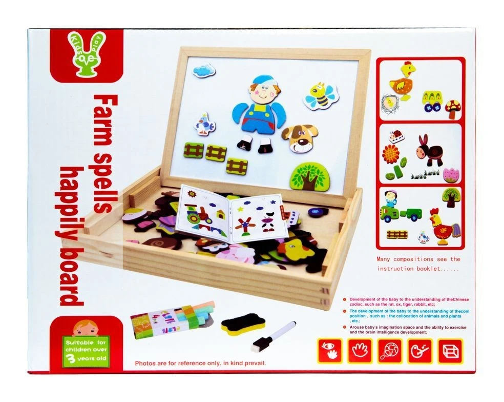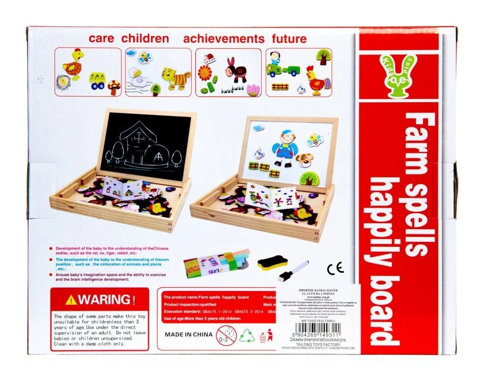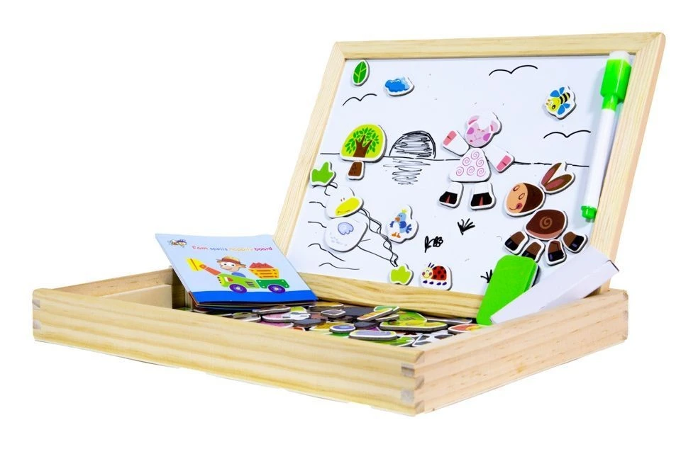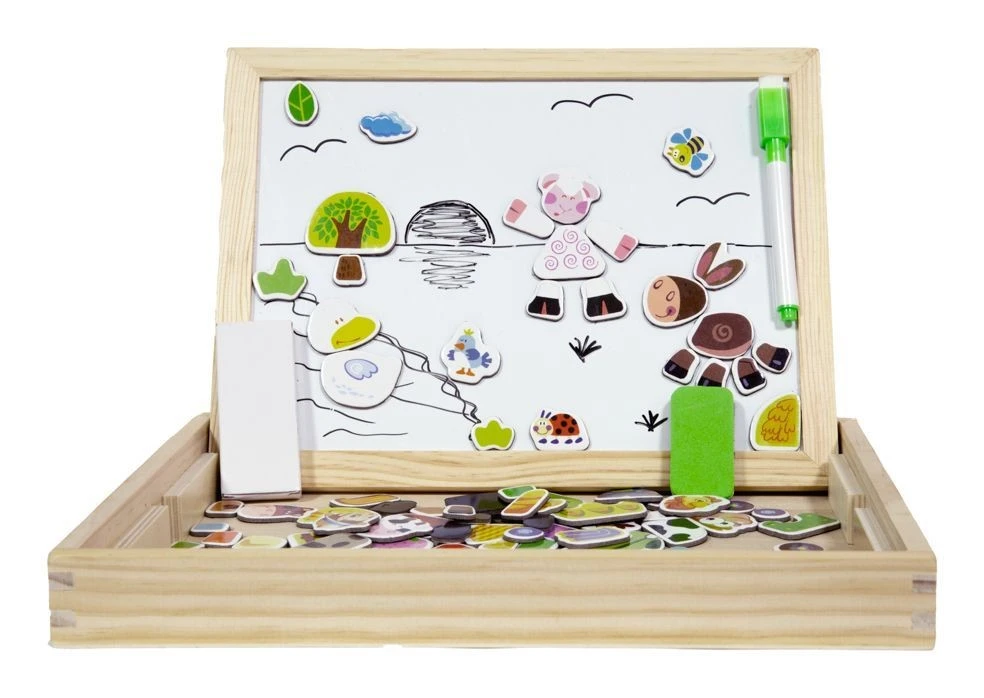 - dwustronna tablica wraz z drewnianą skrzyneczką do przechowywania m.in. magnesów