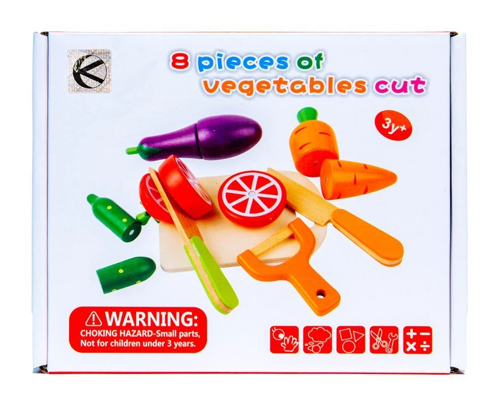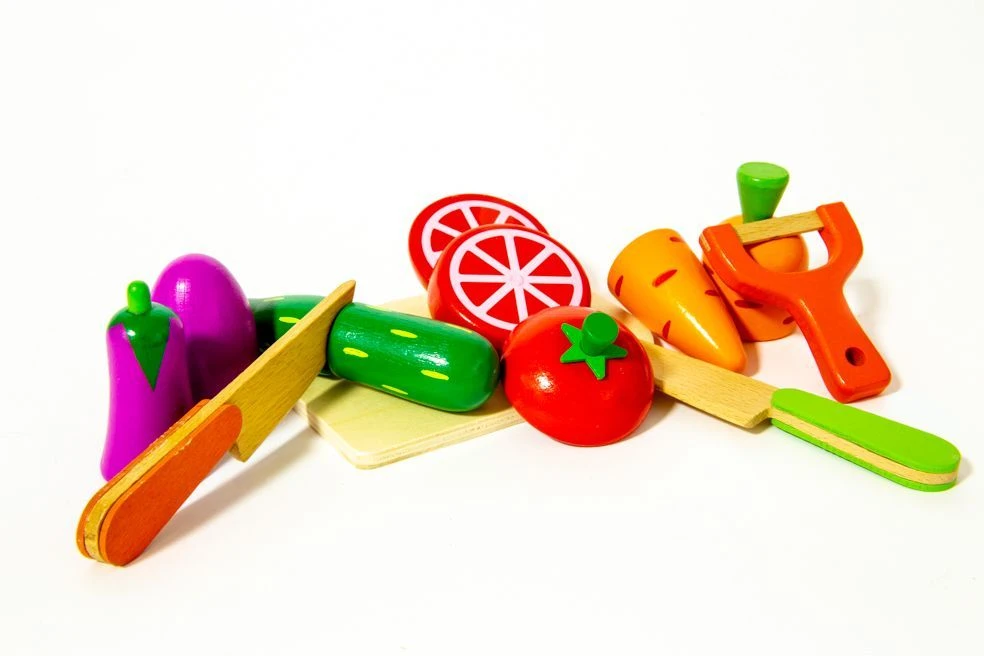 - zestaw kolorowych warzyw – precyzyjnie odwzorowane: pomidor, ogórek, bakłażan, marchew oraz akcesoria w postaci: deski do krojenia o wymiarach 12 x 8 cm i 2 noży o długości 12,5 cm oraz obieraczki o długości 7 cm umożliwia interesującą zabawę w dom lub w gotowanie; żywe i soczyste kolory przyciągną uwagę dziecka i zachęcą do zabawy,