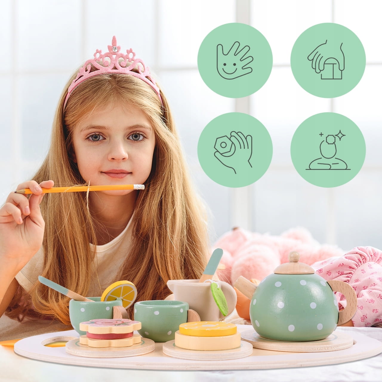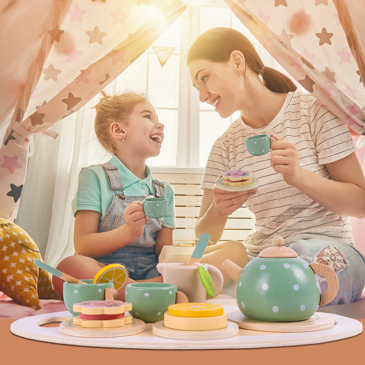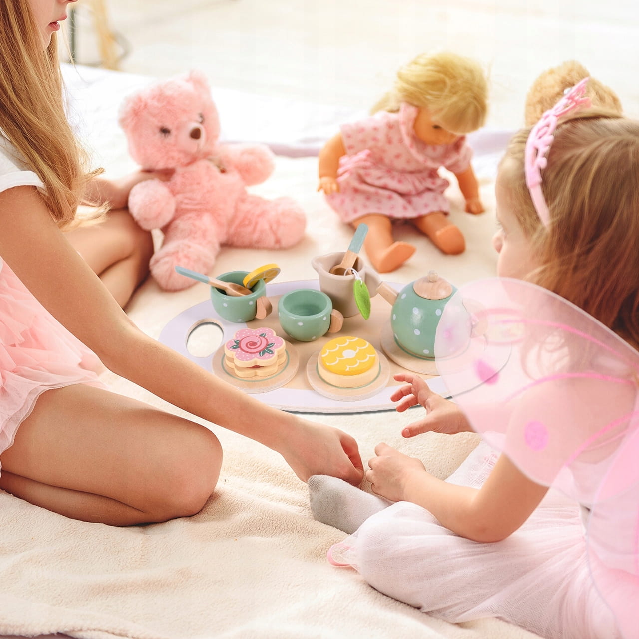 Drewniany zestaw do herbatki dla dzieci solidny serwis do zabawy filiżanki