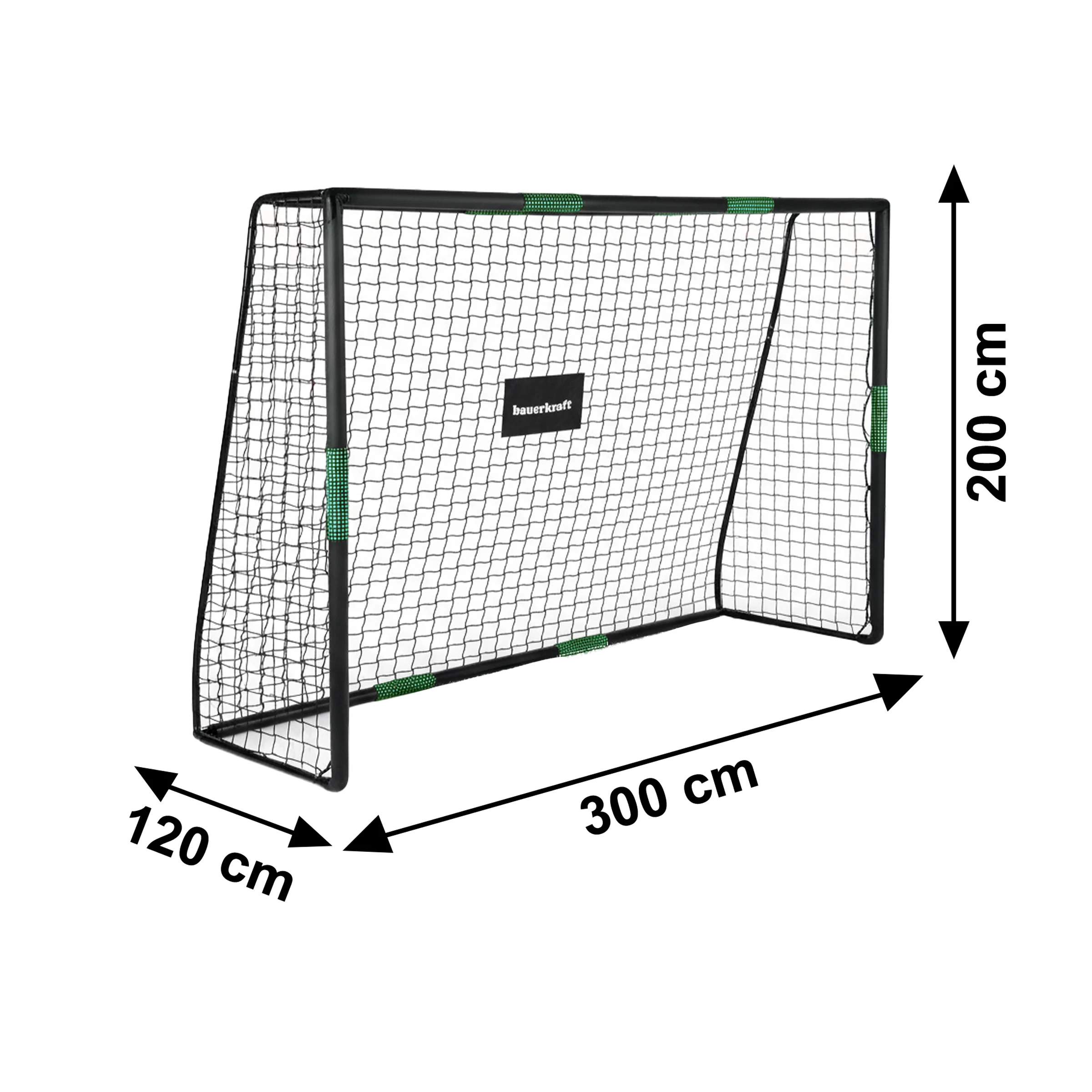 Duża metalowa bramka piłkarska z siatką treningowa do gry w piłkę nożną 300x200x120 cm czarno-zielona