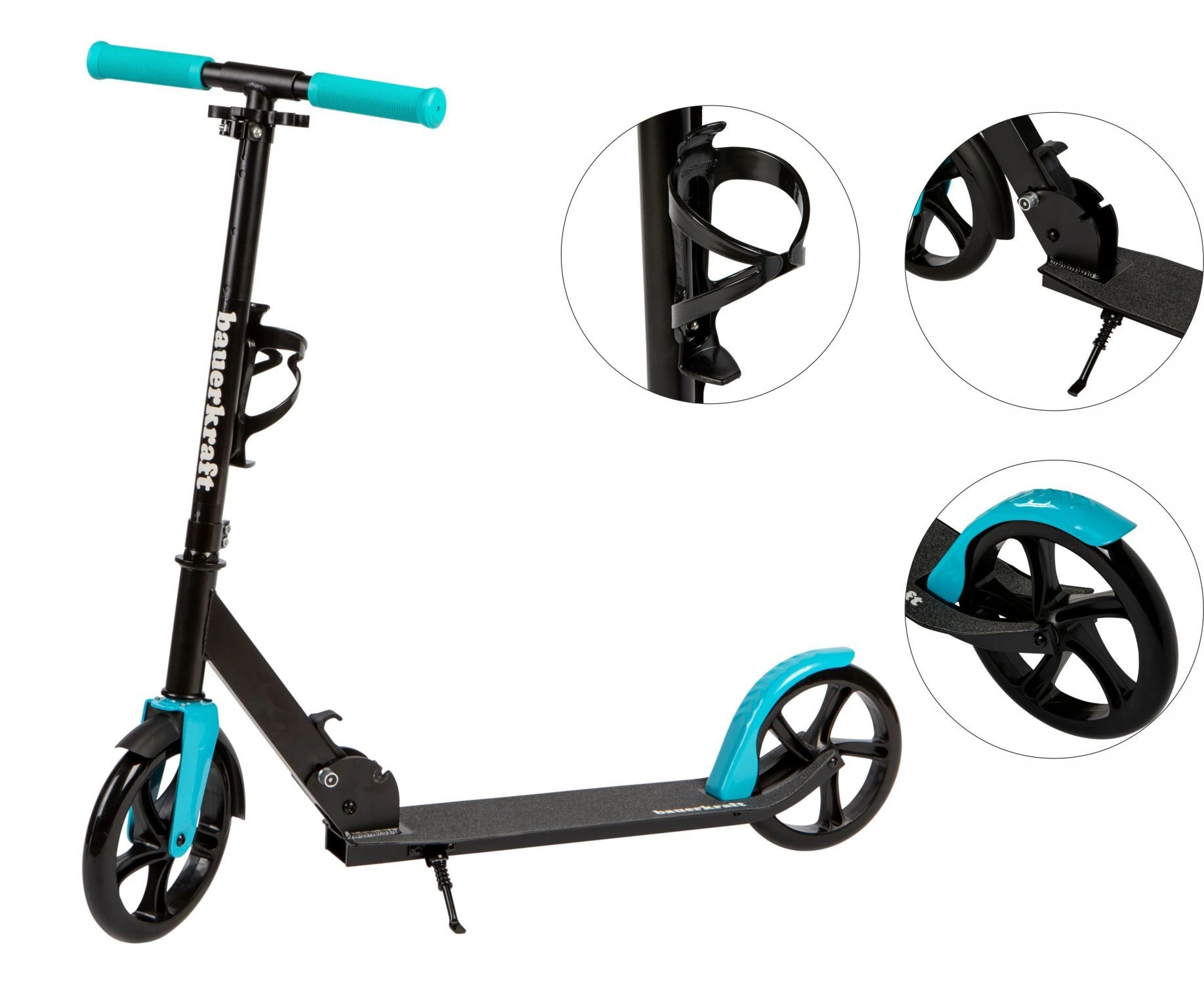 Duża składana hulajnoga 91-101cm Bauerkraft z uchwytem na bidon