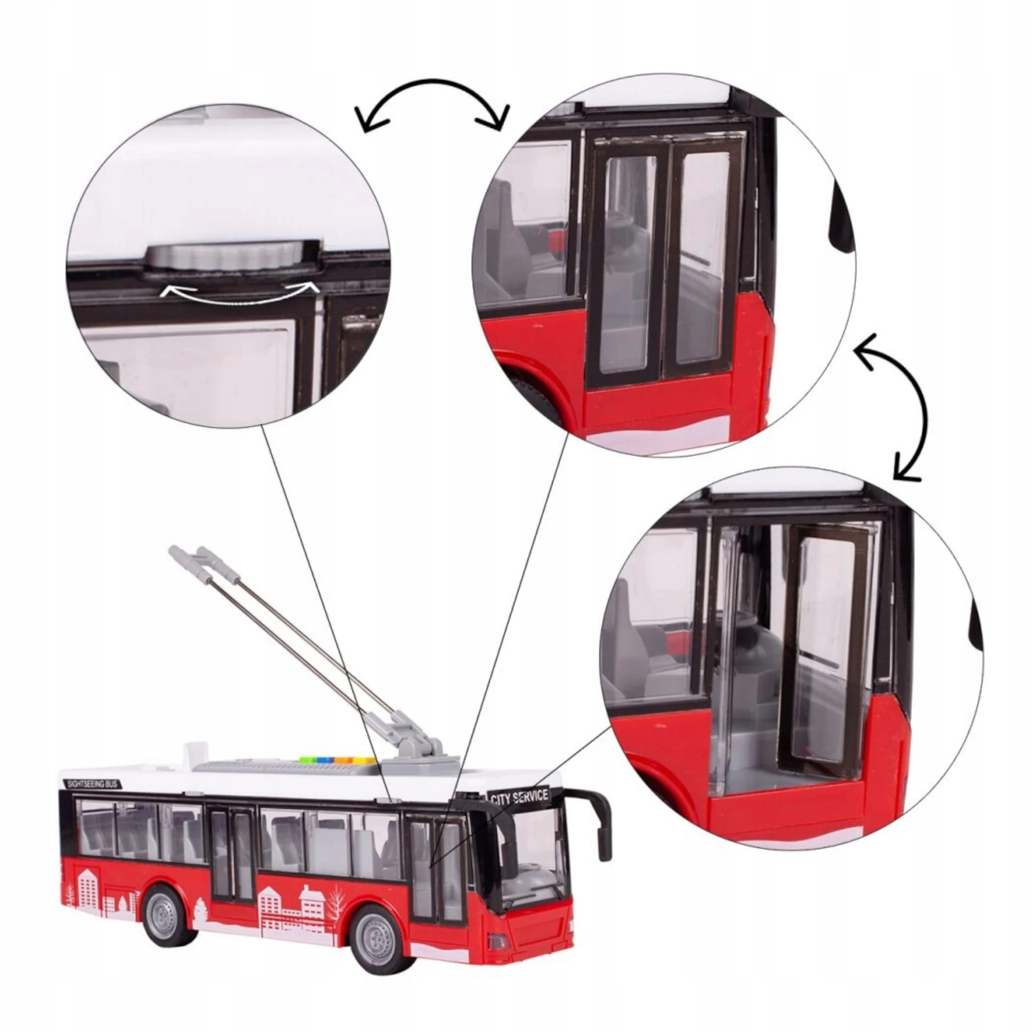 DUŻY TROLEJBUS MIEJSKI OTWIERANE DRZWI DŹWIĘKI ŚWIATŁA WY911A