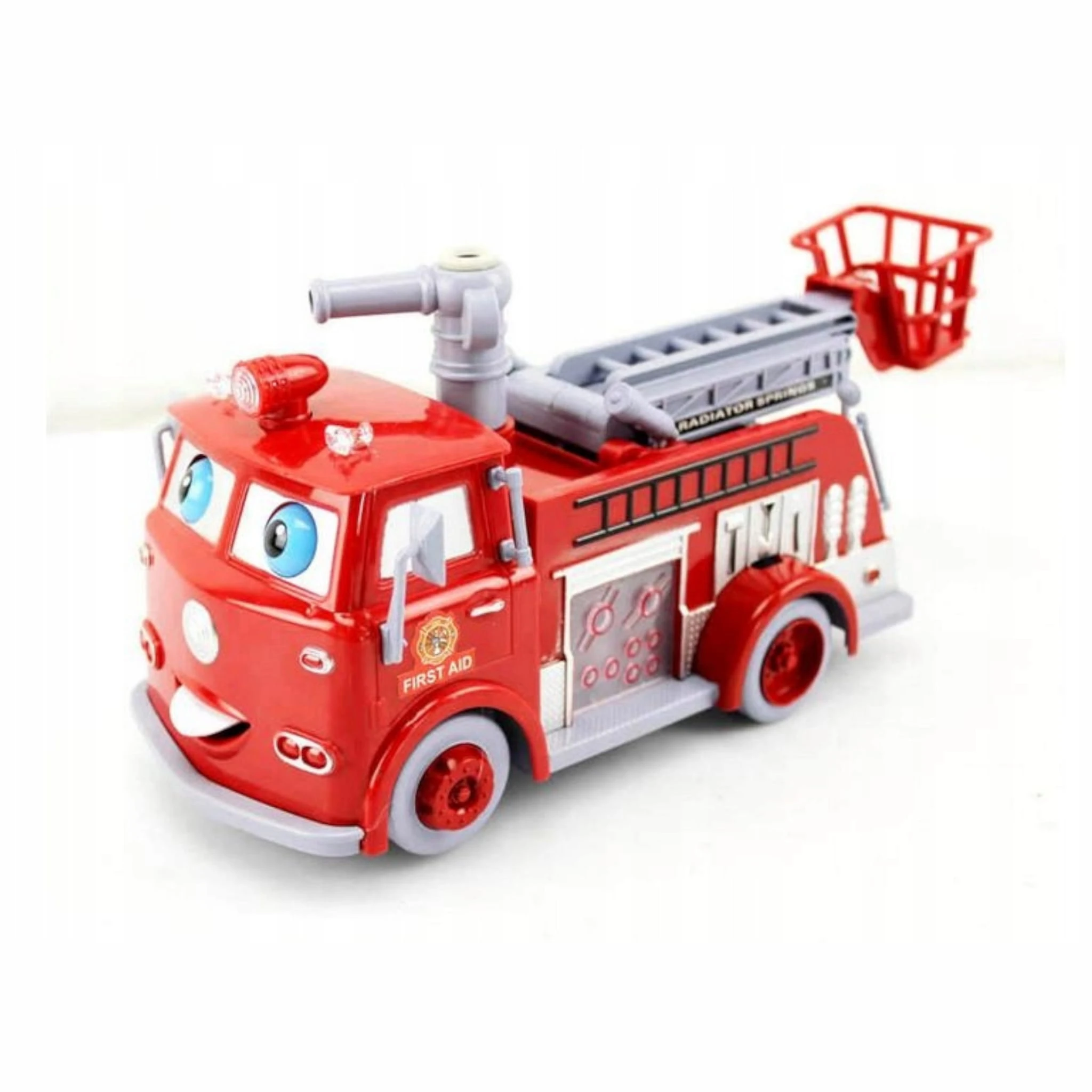 Zabawkowy pojazd został wykonany na wzór prawdziwego wozu strażackiego, ale dodatkowo posiada zabawną poruszającą się buzię. Samochodzik posiada włącznik on/off, po przełączeniu którego zabawka zaczyna jeździć. Gdy napotka przeszkodę na swojej drodze, sam zmienia kierunek jazdy. Podczas poruszania się wydobywa się dźwięk syreny i migają wesoło niebeskie, czerwone i zielone światełka. Na dachu znajduje się armatka wodna, z której po uzupełnieniu płynem wydobywają się bańki. Oczy samochodziku poruszają się w prawo i w lewo, a język wsuwa się i wysuwa. Dodatkową atrakcją jest ruchoma wyciągana drabina zakończona koszem strażackim.