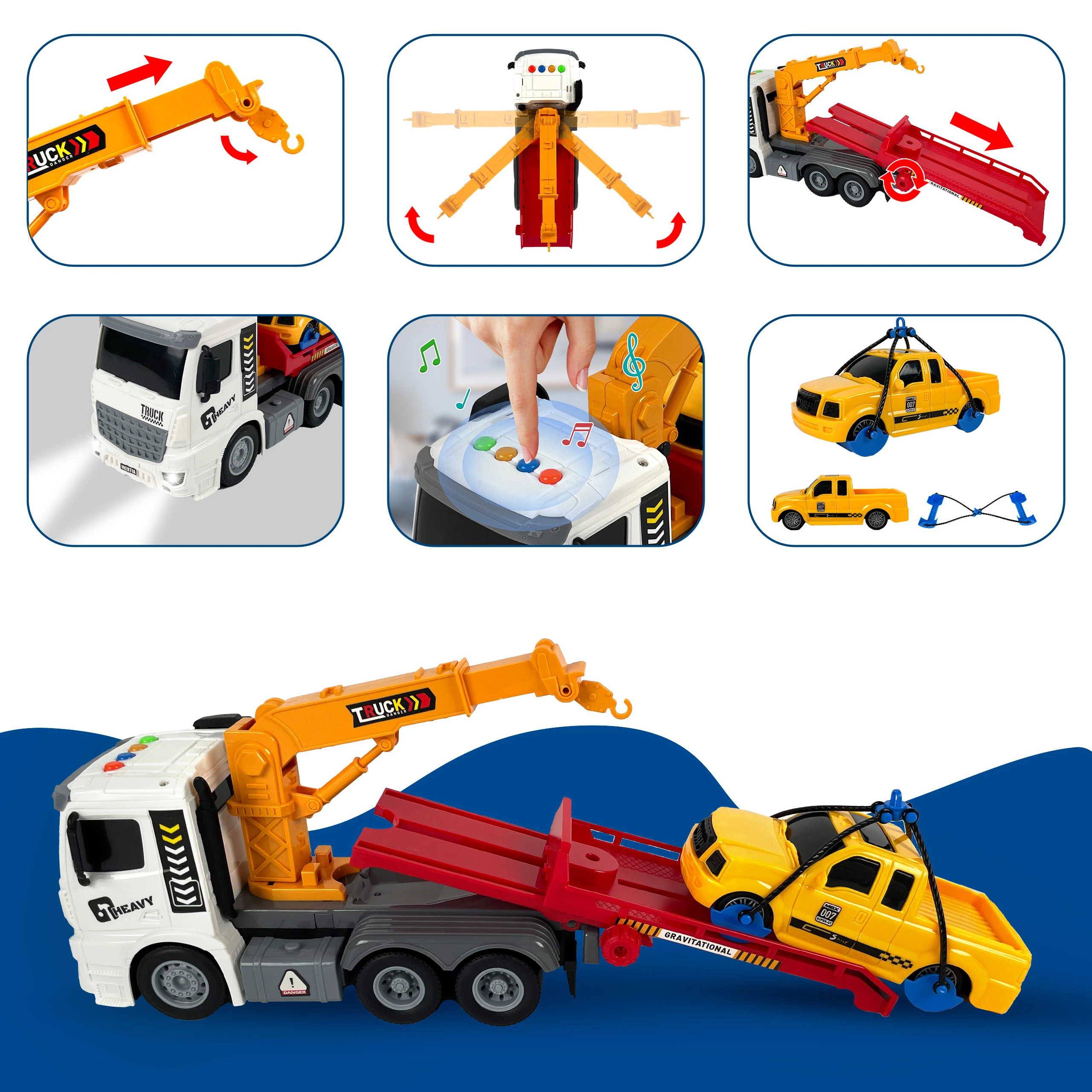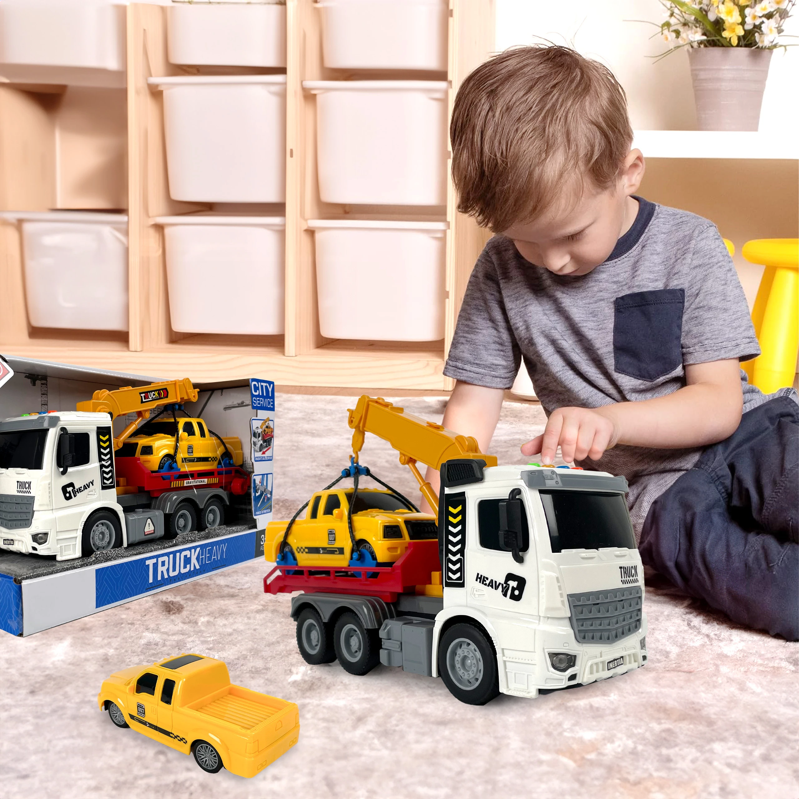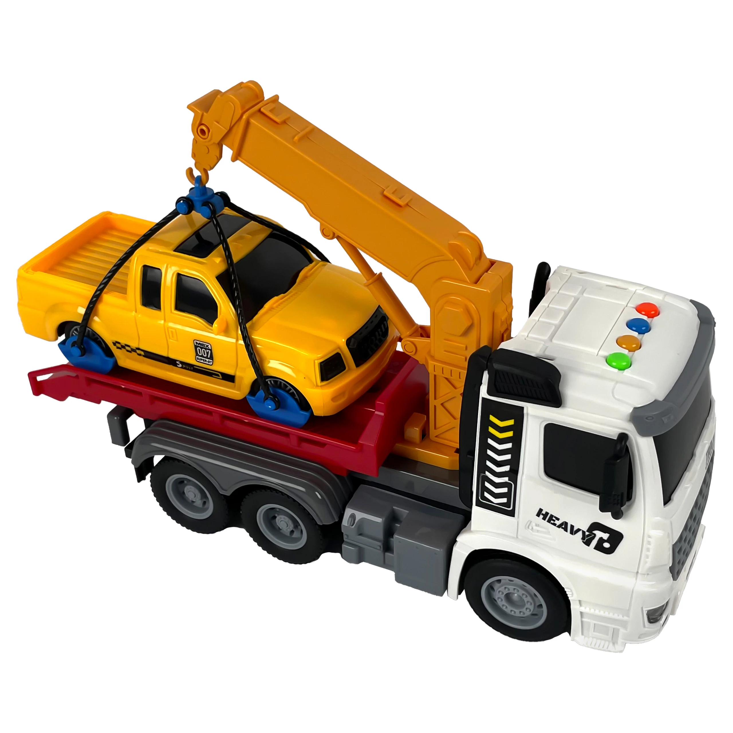 Ruchome ramię dźwigu: Ciężarówka wyposażona jest w w pełni funkcjonalne ramię dźwigu, które można podnosić, opuszczać i obracać o 180°. Dzięki temu dziecko może bawić się w załadunek i transport pojazdów lub innych przedmiotów.