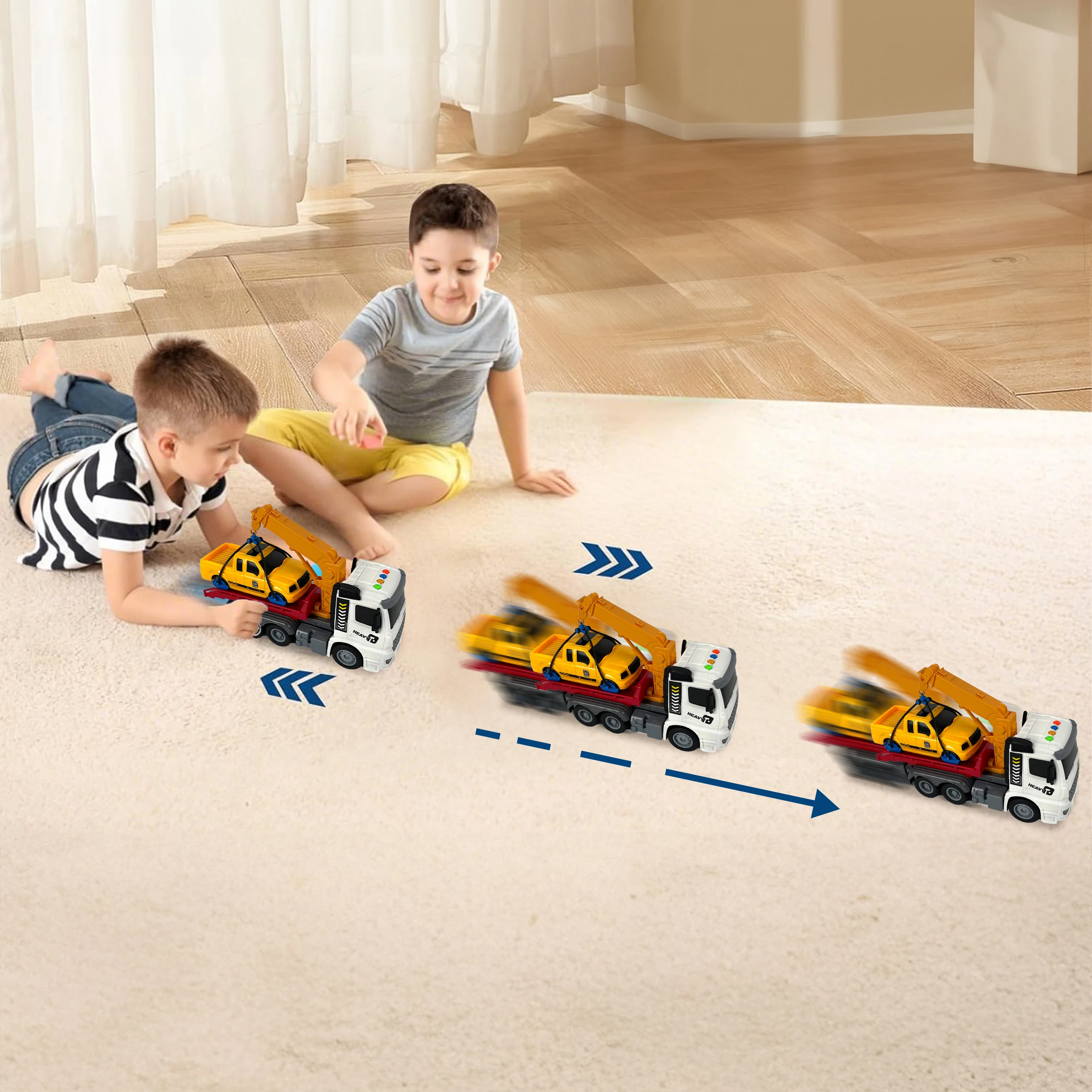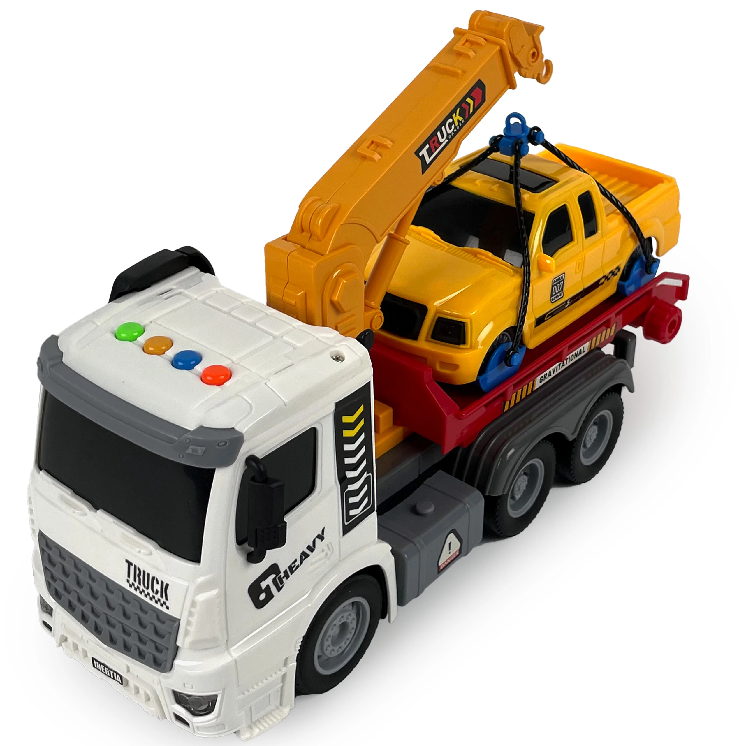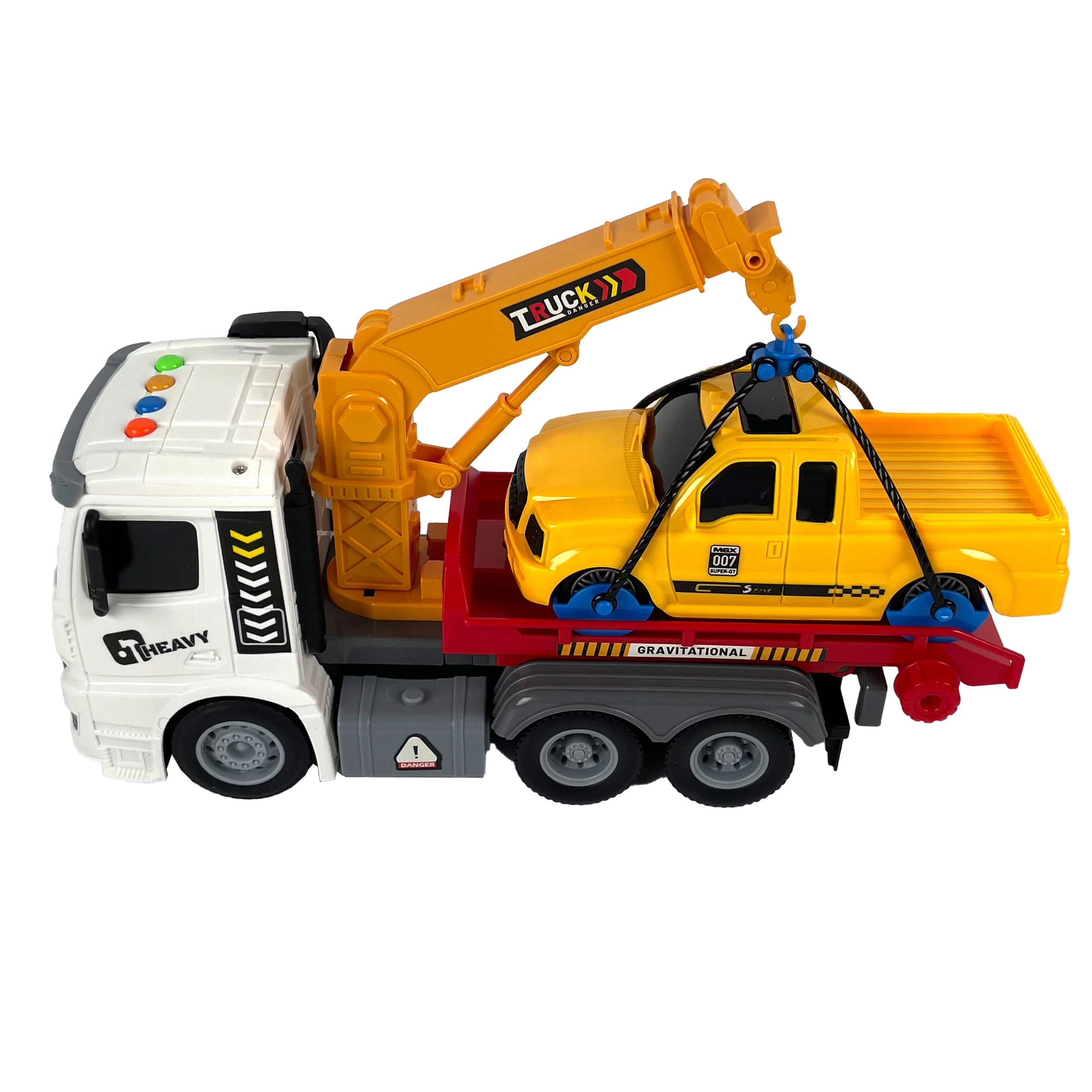 Ruchome ramię dźwigu: Ciężarówka wyposażona jest w w pełni funkcjonalne ramię dźwigu, które można podnosić, opuszczać i obracać o 180°. Dzięki temu dziecko może bawić się w załadunek i transport pojazdów lub innych przedmiotów.