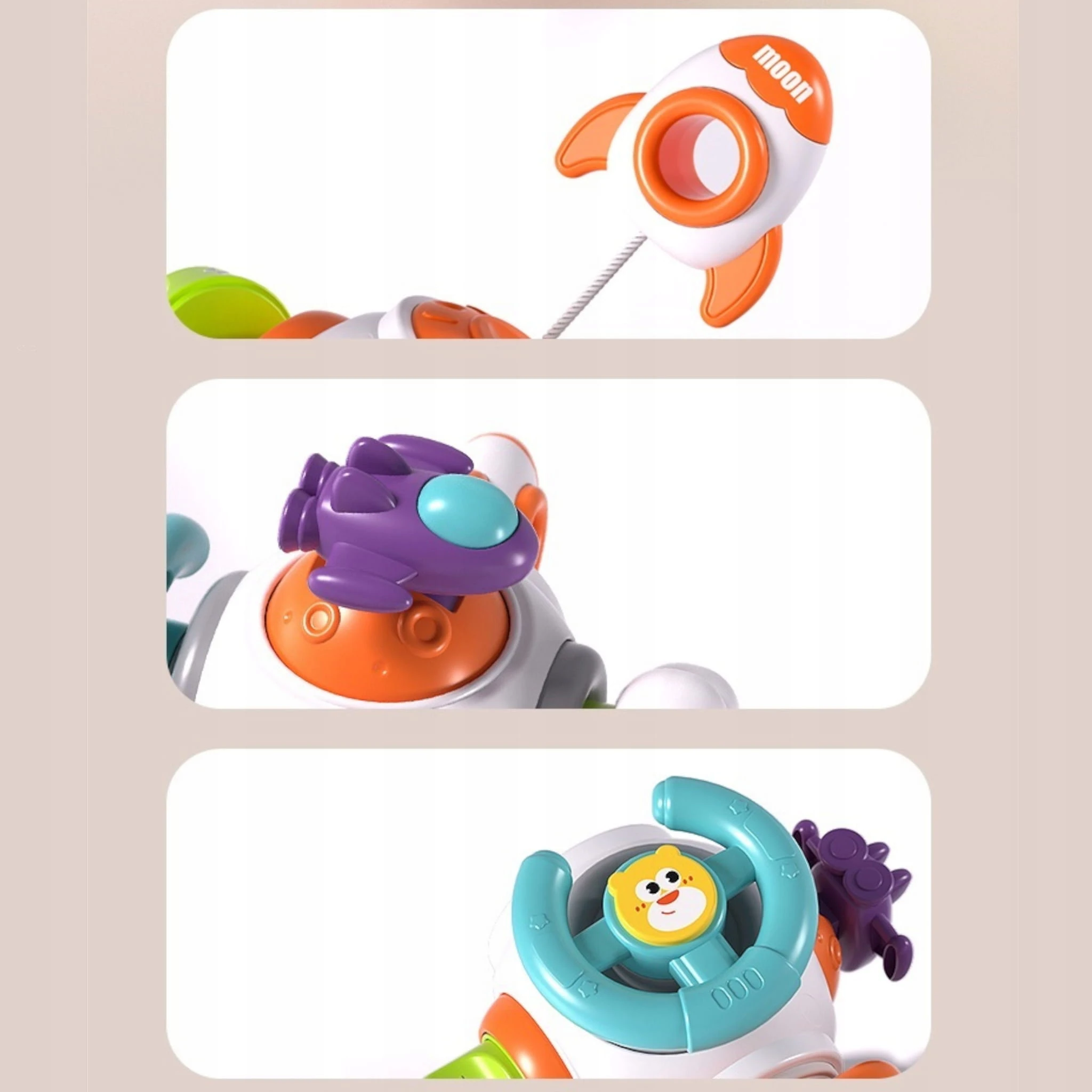 ✅ 6 stref interakcji – każda strona kuli to nowa przygoda: klikające dźwięki, ruchome elementy, przyciski do naciskania i kształty do obracania.