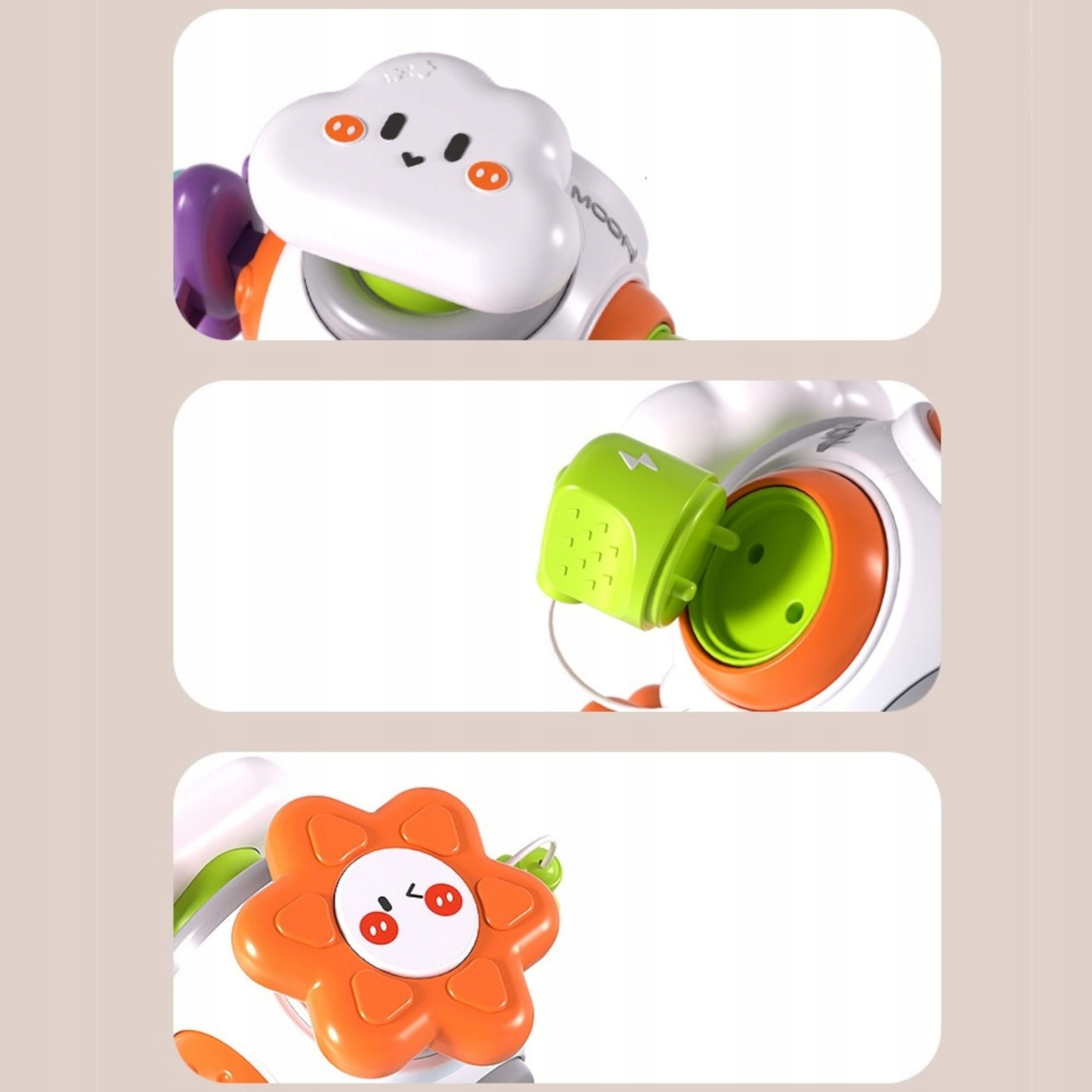 ✅ Wzmacnianie chwytu i siły dłoni – poprzez obracanie, wciskanie i pociąganie różnych części zabawki, dziecko rozwija mięśnie dłoni i poprawia zręczność palców.