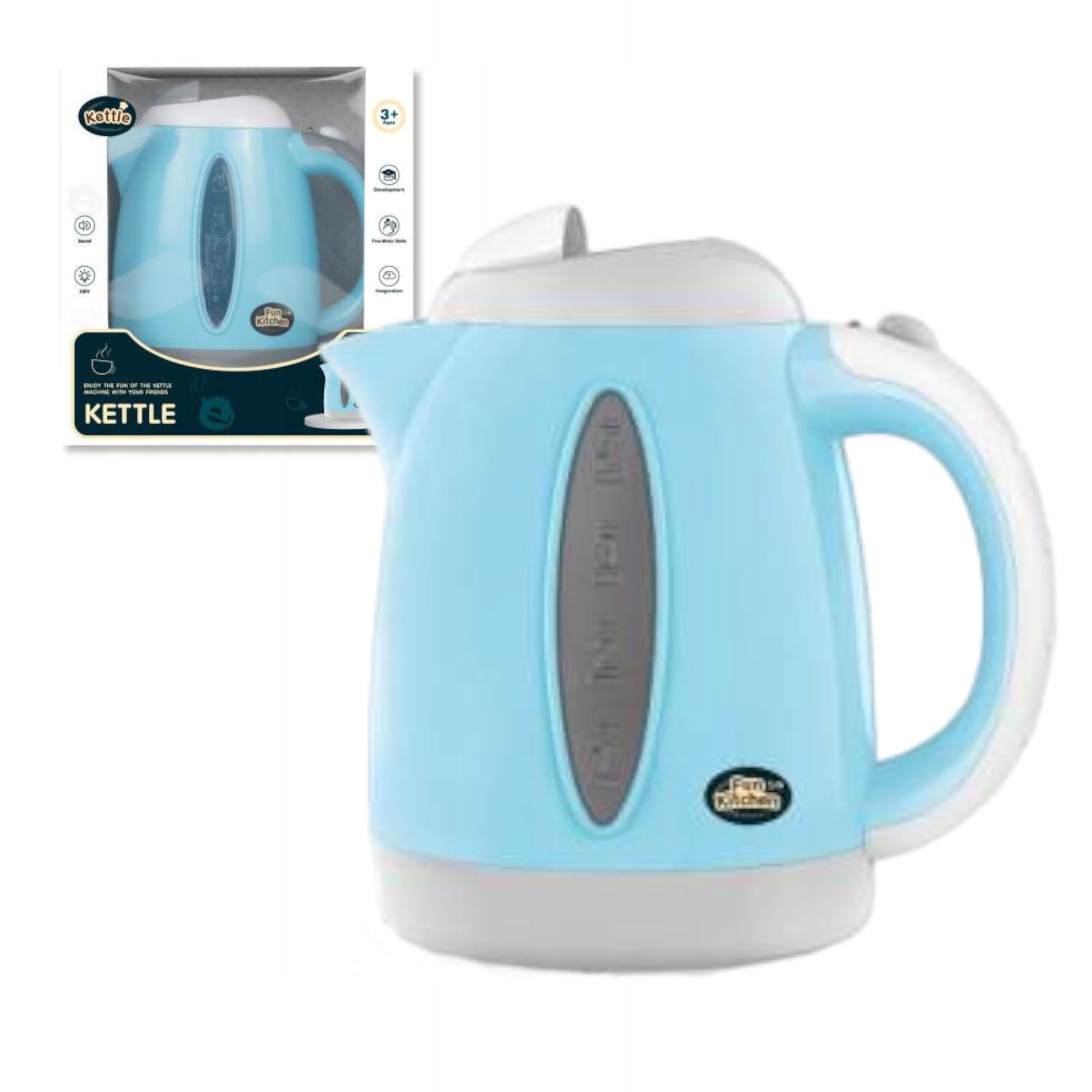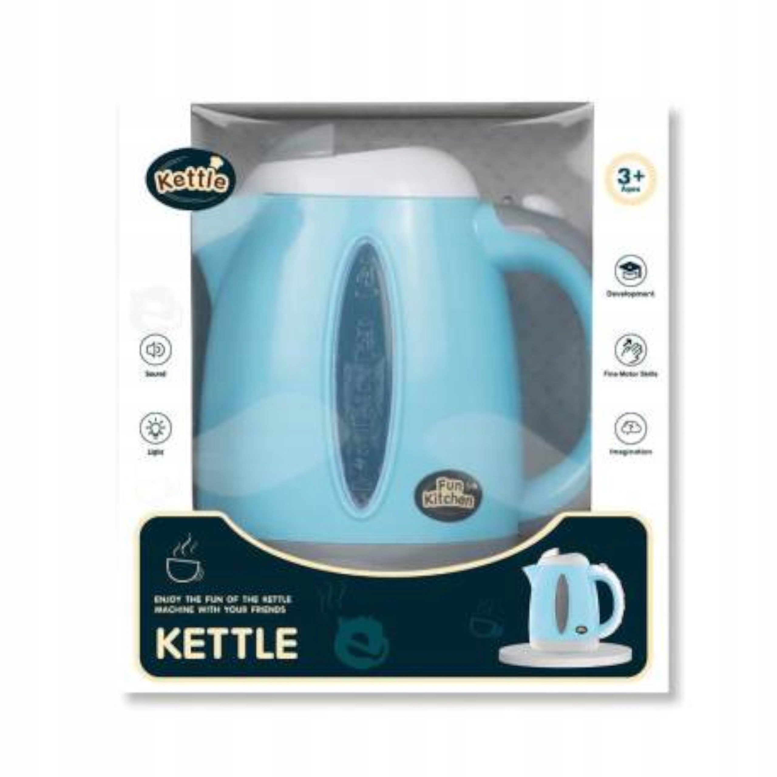 Zabawkowy czajnik został wykonany na wzór prawdziwych kuchennych urządzeń, więc dziecko podczas zabawy poczuje się jak w prawdziwej kuchni. Otwierany otwór, przycisk on/off i wesoła kolorystyka zachęcą dziecko do długiej zabawy. Zabawkowy czajnik to idealny prezent dla każdego małego kucharza, który uwielbia spędzać czas na zabawie w gotowanie.