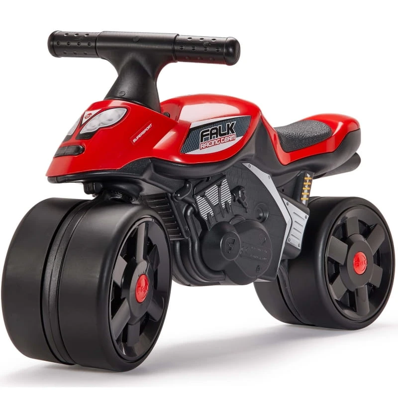 Motorek Biegowy od francuskiej firmy produkującej jeździki Falk to idealna propozycja na prezent dla dziecka od 2 roku życia. Piękna grafika i bardzo realistyczny wygląd sprawi wiele radości małym pociechom. Jeździk został wyposażony w duże koła, które sprawdzą się doskonale na różnych powierzchniach. Przednie kółko jest skrętne dla wygodniejszego prowadzenia i skręcania.