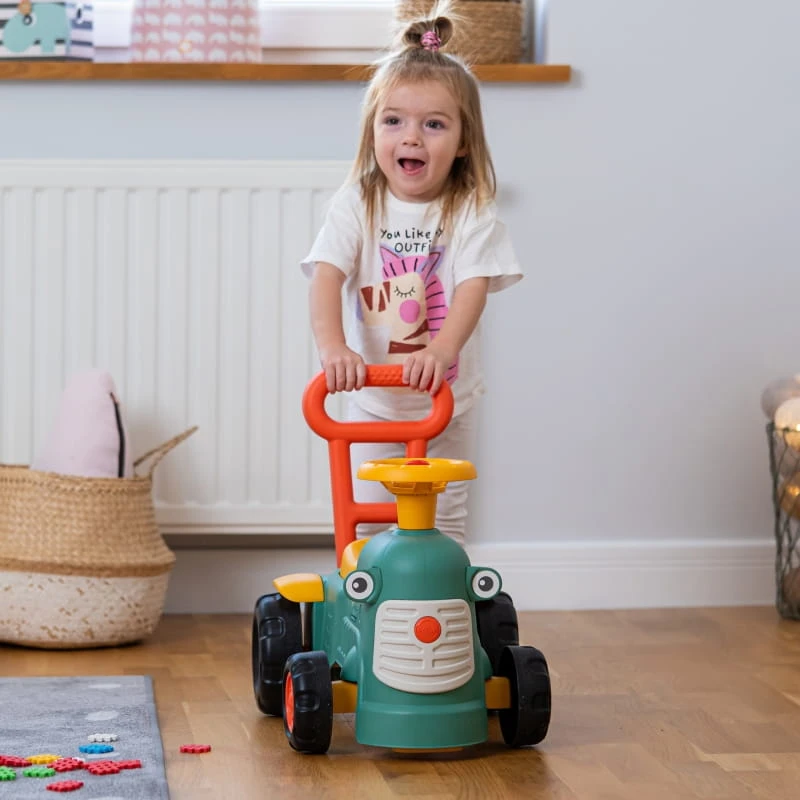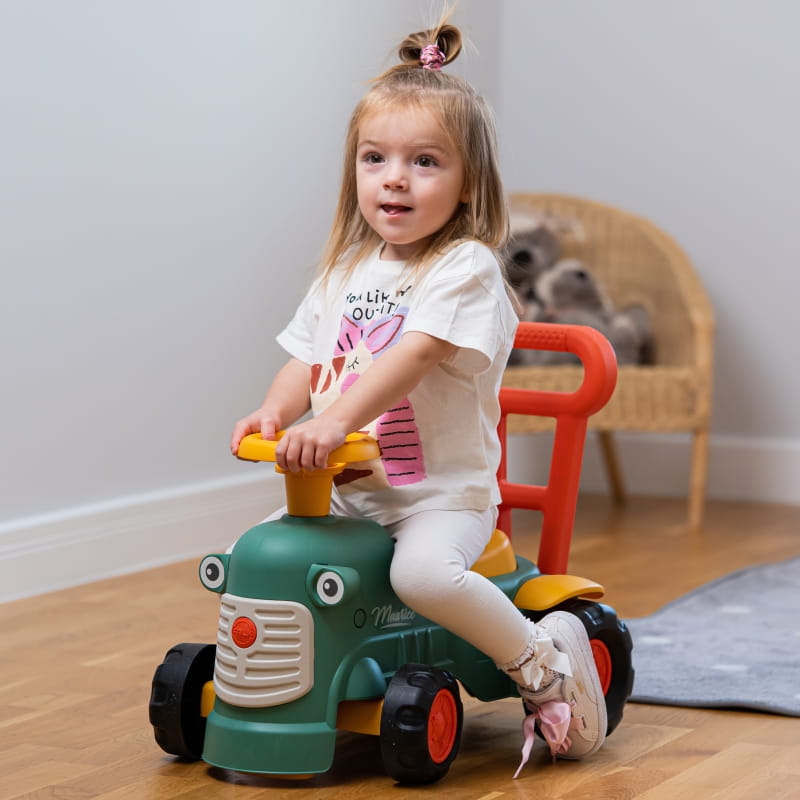 - - jeździk pełni również funkcję pchacza, wspomagając naukę chodzenia u dziecka