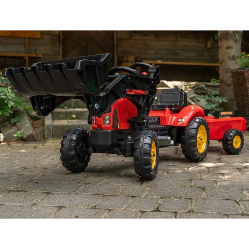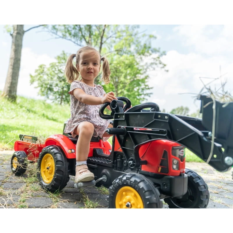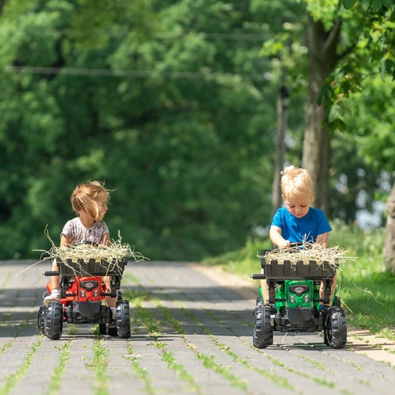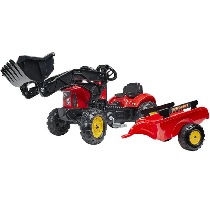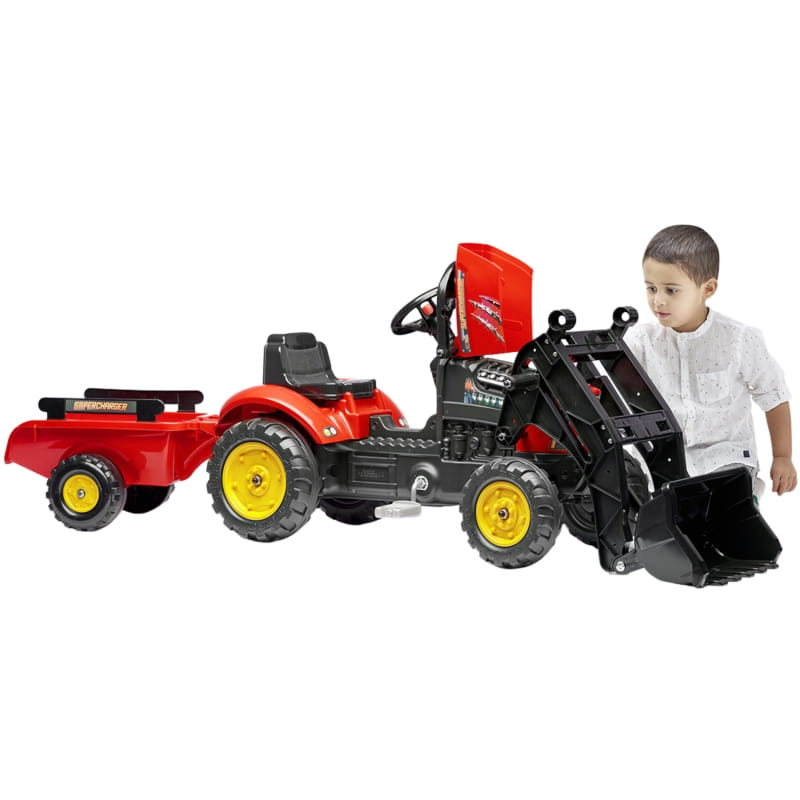 Traktor na pedały z przyczepą Red Supercharger firmy Falk to spełnienie marzeń niejednego małego traktorzysty. Starannie wykonany, z dbałością o najmniejszy szczegół! Żaden Farmer by takim nie pogardził. Pojazd wykonany z najwyższej jakości tworzywa przeznaczony dla dzieci w wieku od 2 lat. Pojazd jest wyposażony w przednią łyżkę oraz odpinaną przyczepę z panelami i kierownicę z klaksonem. Koła traktorka zostały wykonane z wysokiej jakości plastiku. Traktor posiada również otwieraną maskę z imitacją prawdziwego silnika.