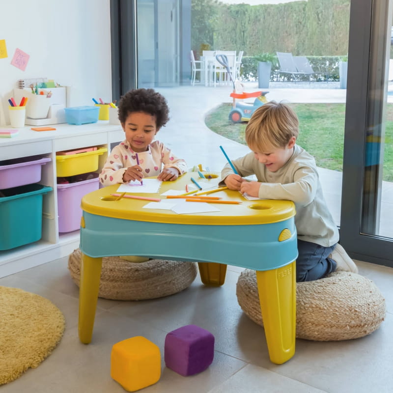 Stolik Wodny CASUAL z Przykrywą 4w1 Piaskownica Biurko Stolik Piknikowy z akcesoriami od renomowanej firmy Feber to nieodłączny element każdego placu zabaw, zarówno przy domu, jak i w miejscach użyteczności publicznej. Stół ma dwie komory, do których można wsypać piasek lub nalać wodę. Dodatkowo w centralnej części stołu dzieci znajdą młynek, który sprawi, że zabawa będzie jeszcze bardziej atrakcyjna. Całość została zaprojektowana z myślą o najmłodszych pociechach, dzięki czemu stolik ma zaokrąglone krawędzie. Po założeniu pokrywy zestaw może służyć jako stolik do rysowania, posiada wgłębienia np. na kredki. Piaskownice firmy Feber wykonane są z wysokiej jakości materiałów z dbałością o najdrobniejsze szczegóły. Plastik pokryto powłoką UV, która pozwoli zachować jakość barw przez długi czas. Piaskownice można łączyć z innymi placami zabaw czy też domkami ogrodowymi, tworząc wyjątkowe miejsce do dziecięcych zabaw.