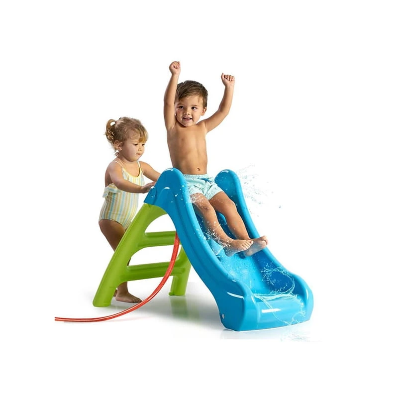 Zjeżdżalnia First Slide od hiszpańskiej marki FEBER dla dzieci od 1 roku życia. Idealna jako pierwsza zjeżdżalnia dla dziecka. Funkcja 2w1 - możliwość podłączenia węża ogrodowego do ślizgu i już mamy wodny plac zabaw idealny w upalne dni. Można łatwo złożyć i schować do garażu. Produkt wykonany z wytrzymałego i odpornego plastiku pokrytego powłoką ANTI-UV, która chroni przed blaknięciem.
