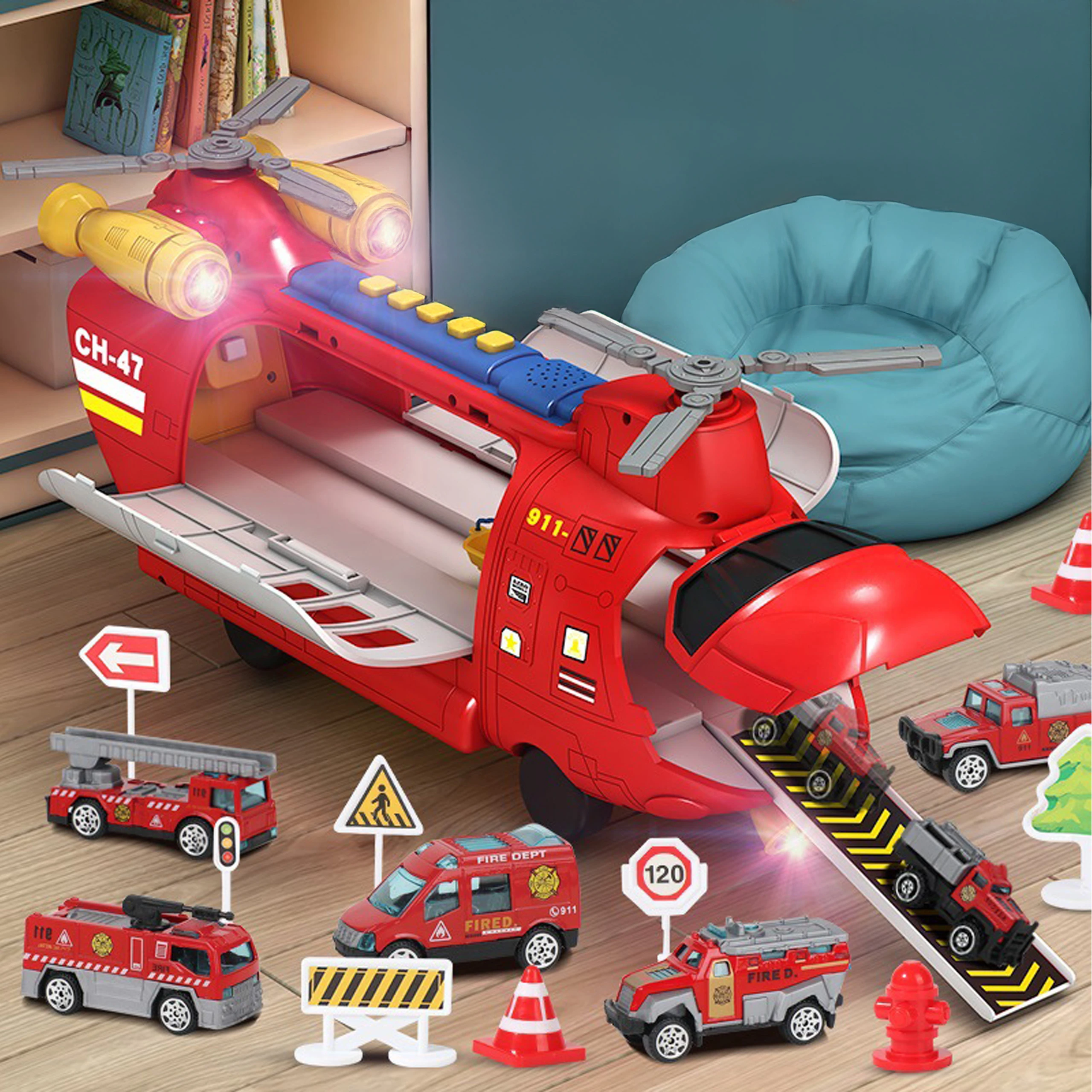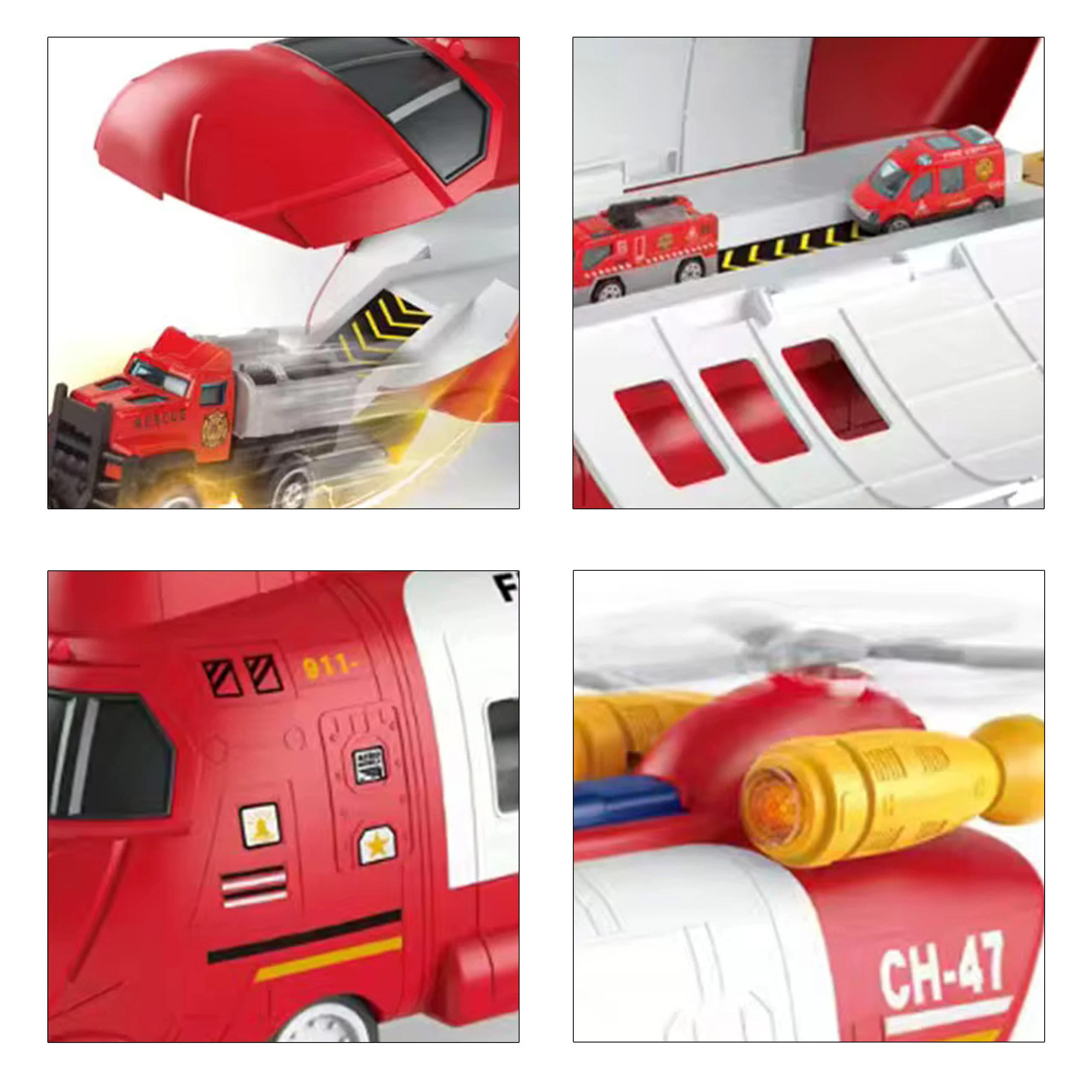 Strażacki helikopter ratunkowy CH-47 to wielofunkcyjna zabawka 2w1 z rampą wyrzutni, efektami świetlnymi, dźwiękowymi i 6 metalowymi autkami w zestawie. Dla dzieci od 3 roku życia. Gotowe na prezent w estetycznym opakowaniu!