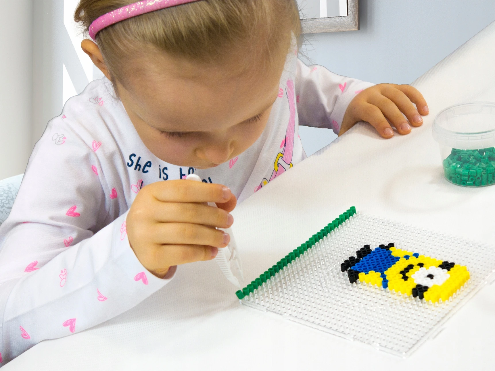 Zaproponuj mu wciągające prace ręczne przy układaniu obrazków z koralików ułożonych na plastikowej formie. Gotowy kształt utrwalamy poprzez zaprasowanie i możemy cieszyć się stworzonym obrazkiem!