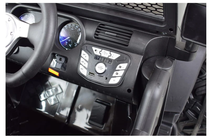 Kierownica z klaksonem oraz różne melodie wgrane w panel są dodatkową atrakcją. Panel posiad wejście na USB, AUX, kartę pamięci i bluetootha