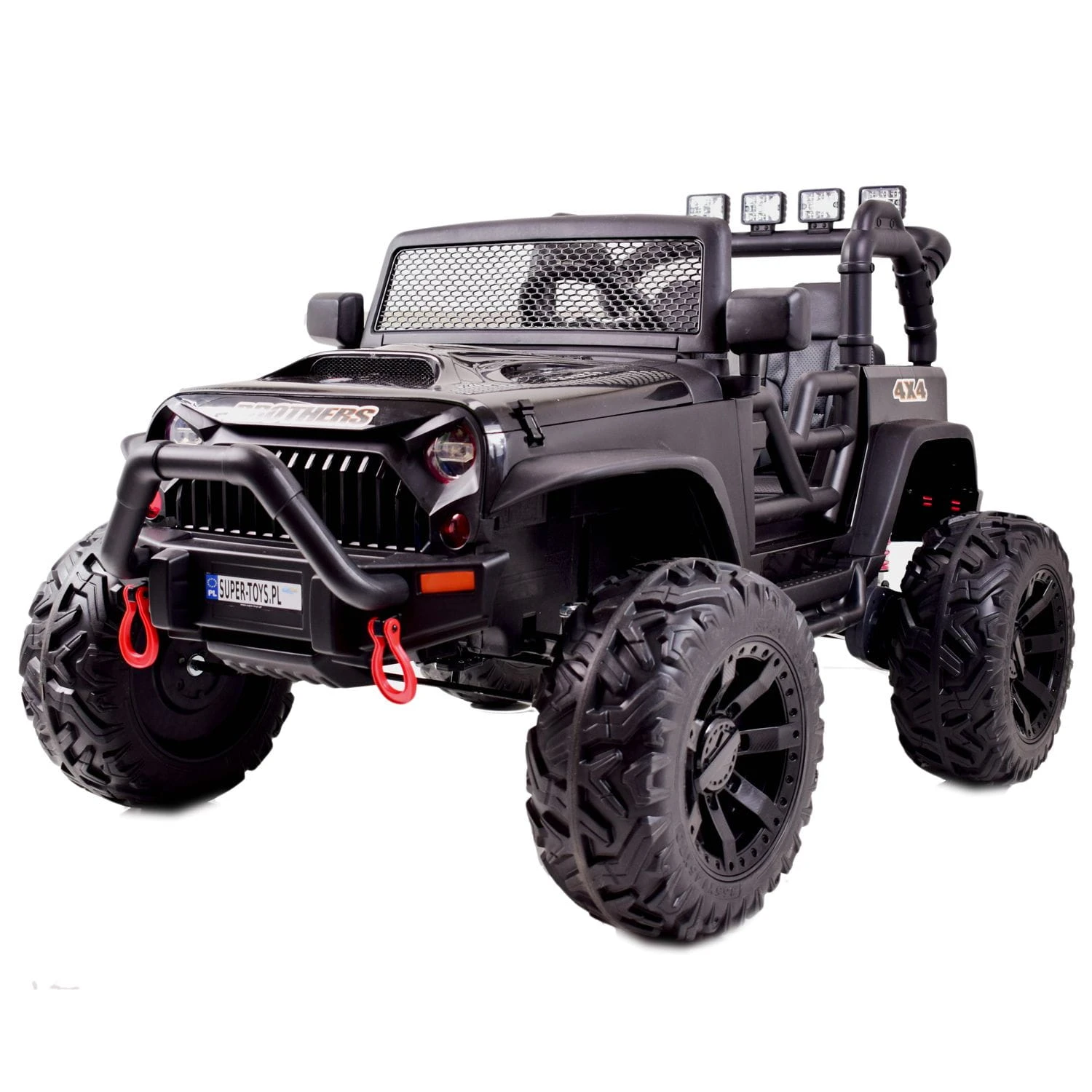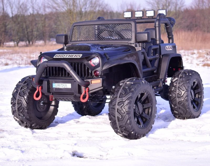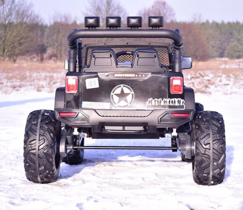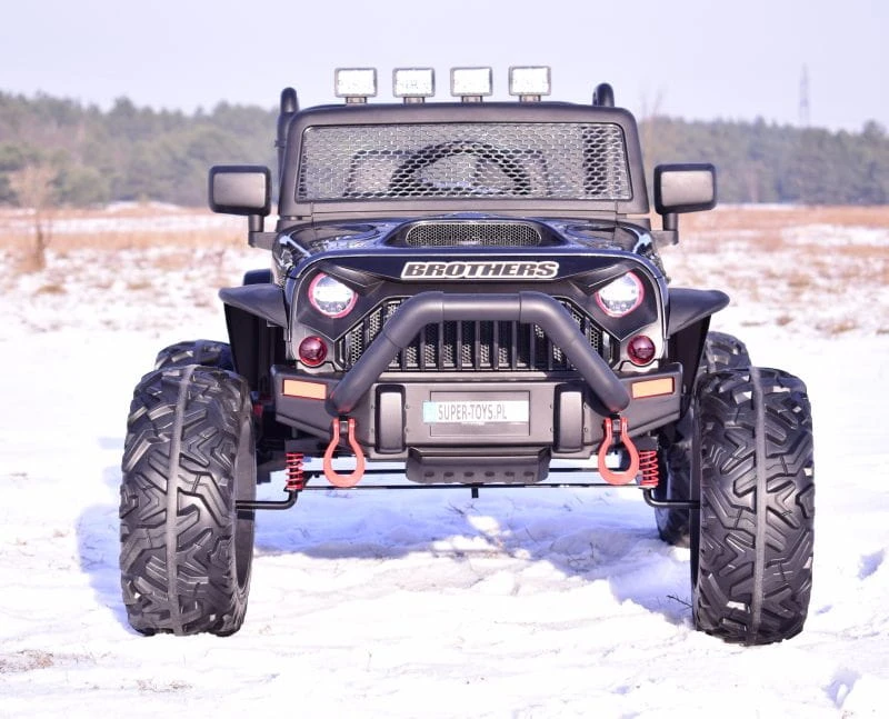 JEEP BROTHERS 24V z pełnej wersji napędzany 2 mocnymi silnikami 200 W ( ŁĄCZNIE 400 W mocy, z całą pewności zainteresuje młodego wielbiciela jazdy po terenie.