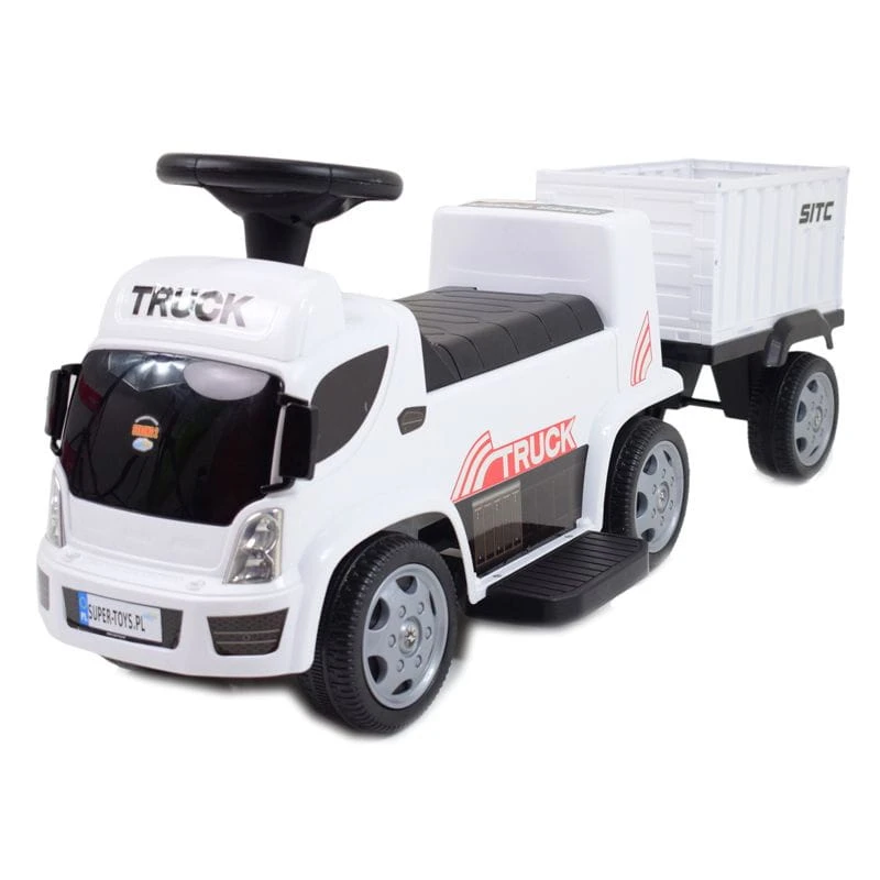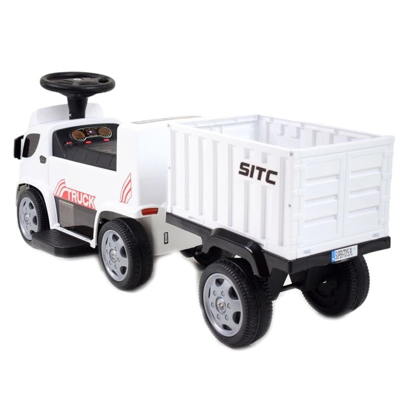 Auto ciężarówka z przyczepą napędzany mocnym silnikiem 30 W z całą pewności zainteresuje młodego wielbiciela ciężarówek.