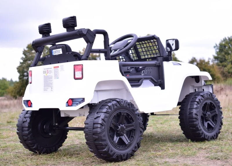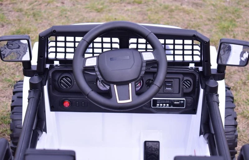 Pojazd posiada przednie światła z możliwością wyłączenia. Nowoczesny panel z USB, AUX prawdziwym Radiem FM oraz funkcjami sterowania pojazdem sprawią że mały Kierowca będzie czuł się komfortowo w tym pojeździe.