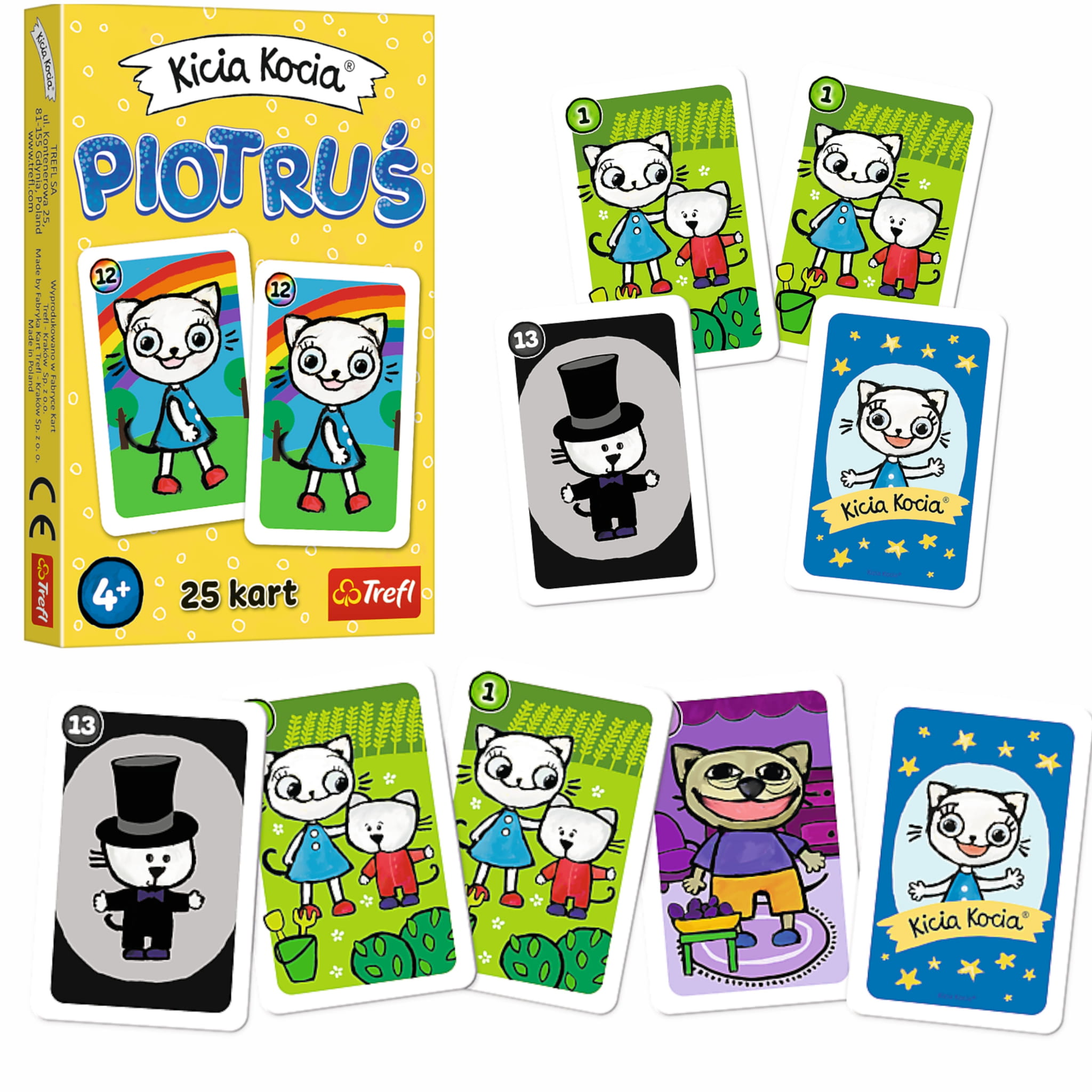 Piotruś Kicia Kocia to fascynująca gra karciana, którą znają wszyscy. Ta ekscytująca gra nie tylko dostarcza rozrywki, ale także rozwija zdolności koordynacyjne i spostrzegawczość. Dodatkowym ich atutem są wizerunki znanych postaci z lubianej bajki Kicia Kocia.