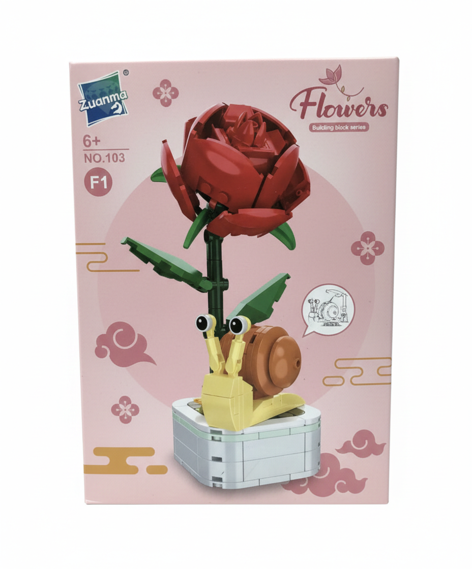 Klocki Dekoracyjne Czerwona Róża ze Ślimakiem – Zestaw Konstrukcyjny 2w1