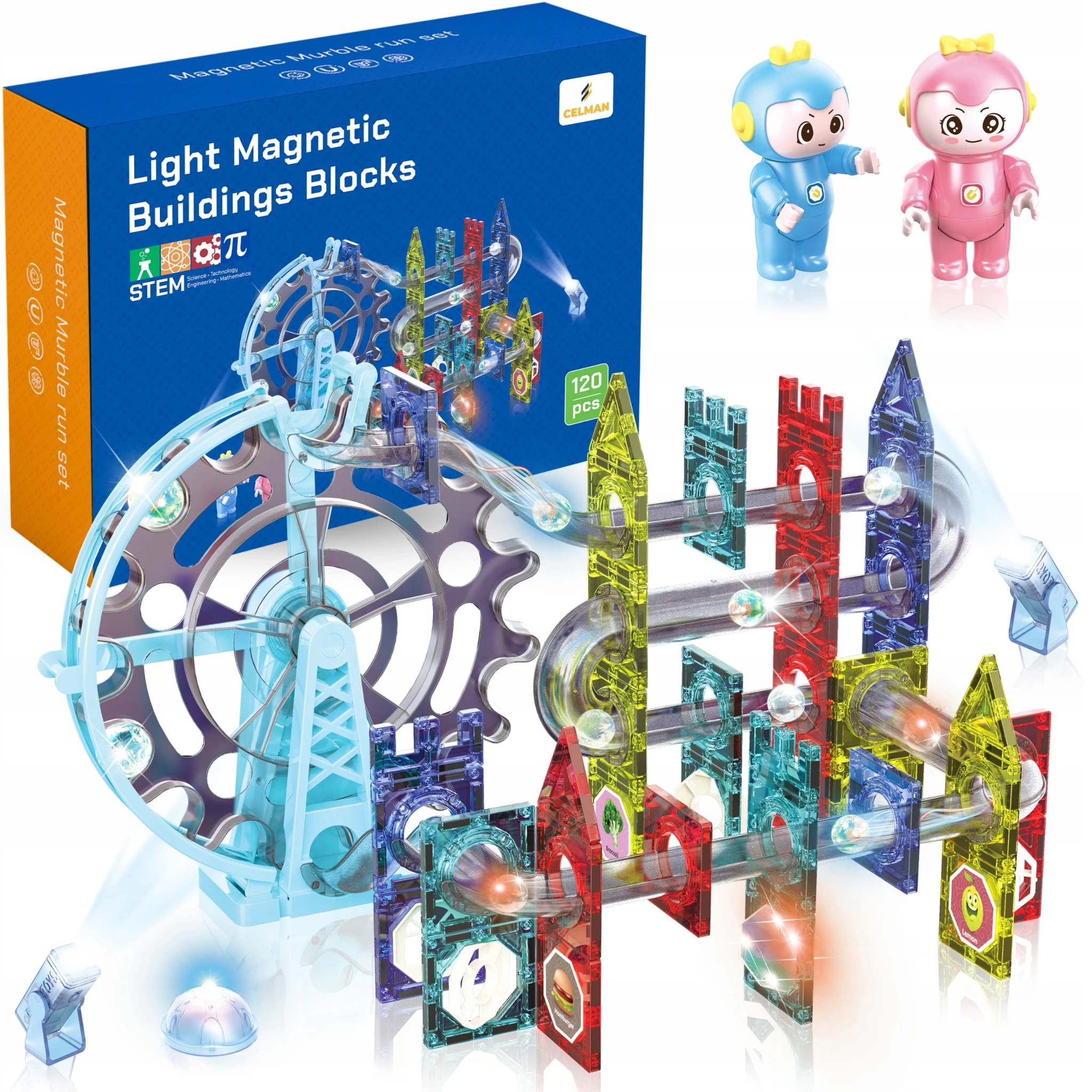 KLOCKI MAGNETYCZNE TOR KULKOWY ŚWIECĄCY - 120 ELEMENTÓW