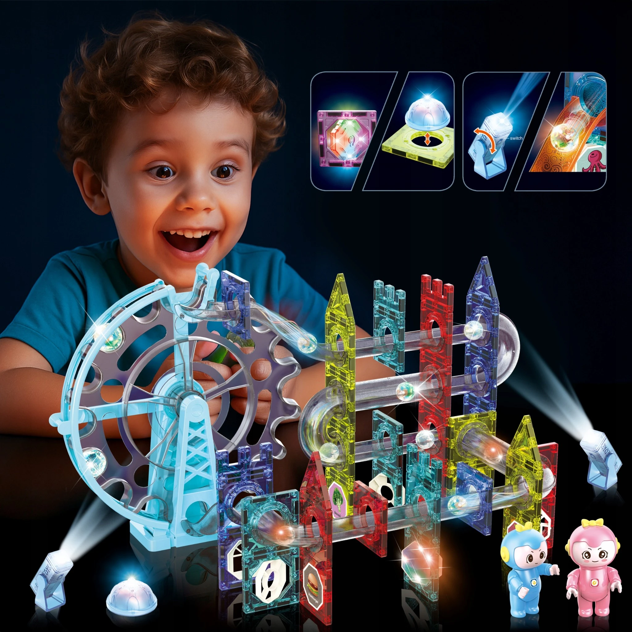 120 elementów do kreatywnej konstrukcji -W zestawie znajdziesz 120 różnorodnych części, w tym świecące kulki i magnetyczne klocki, które pozwalają na nieskończoną ilość konfiguracji i godziny zabawy.