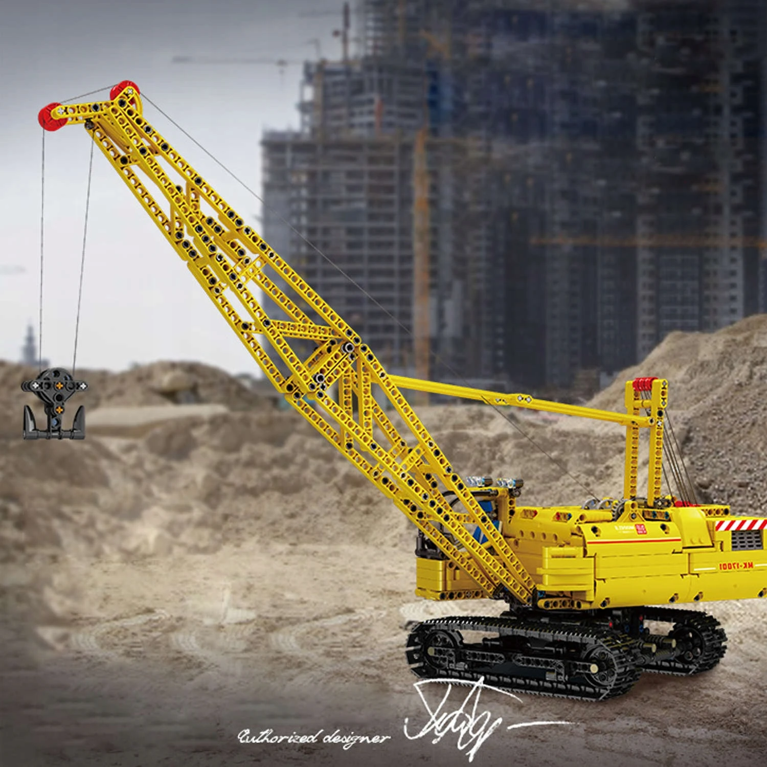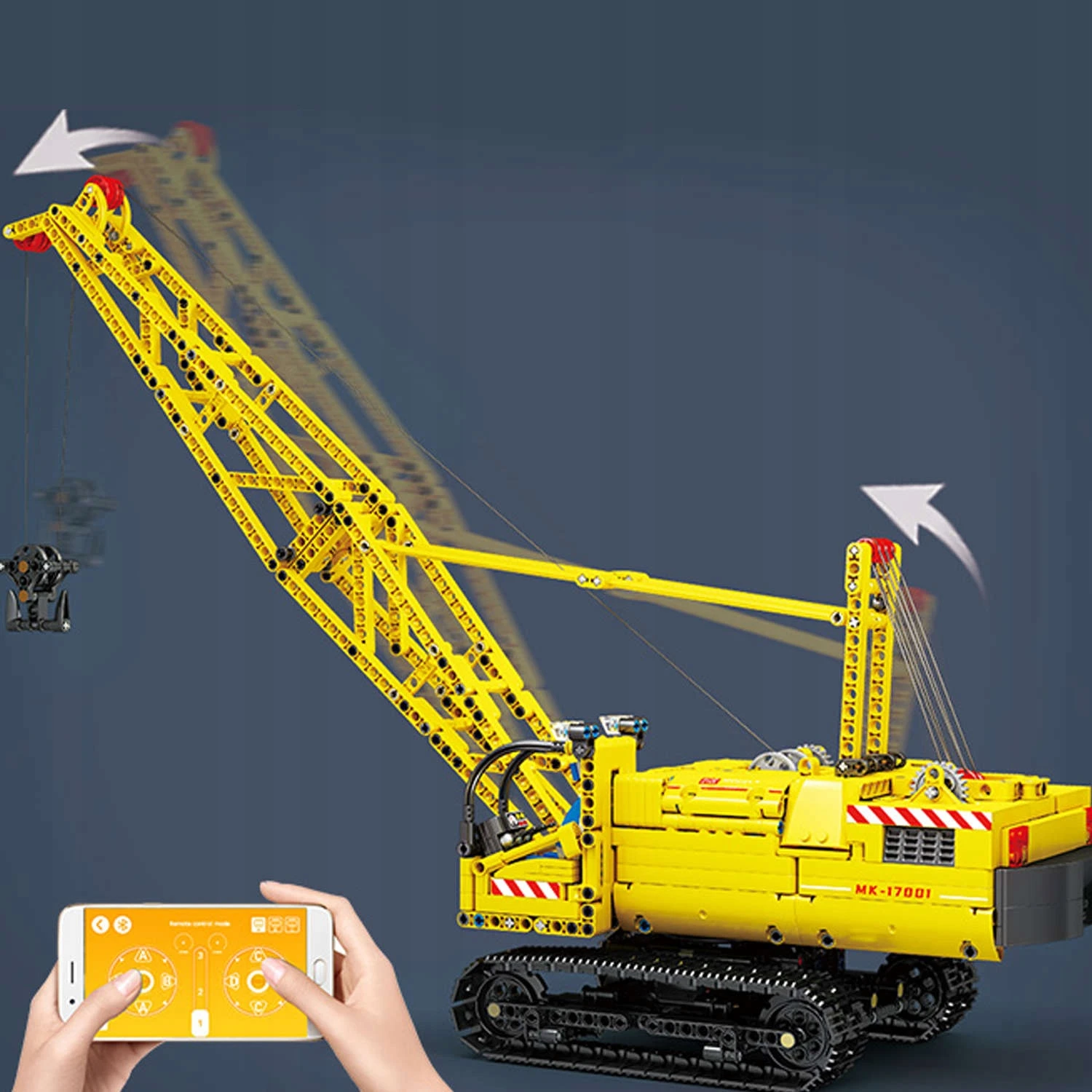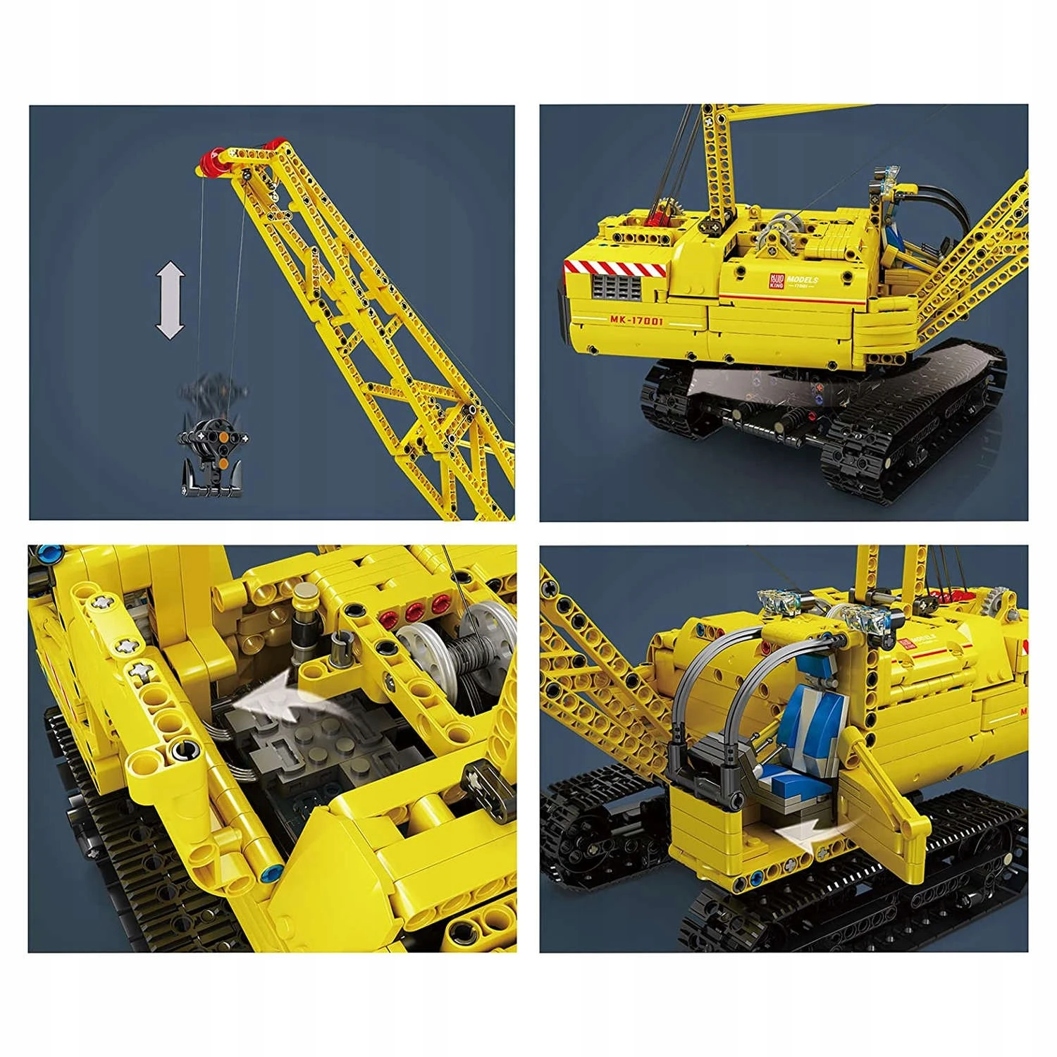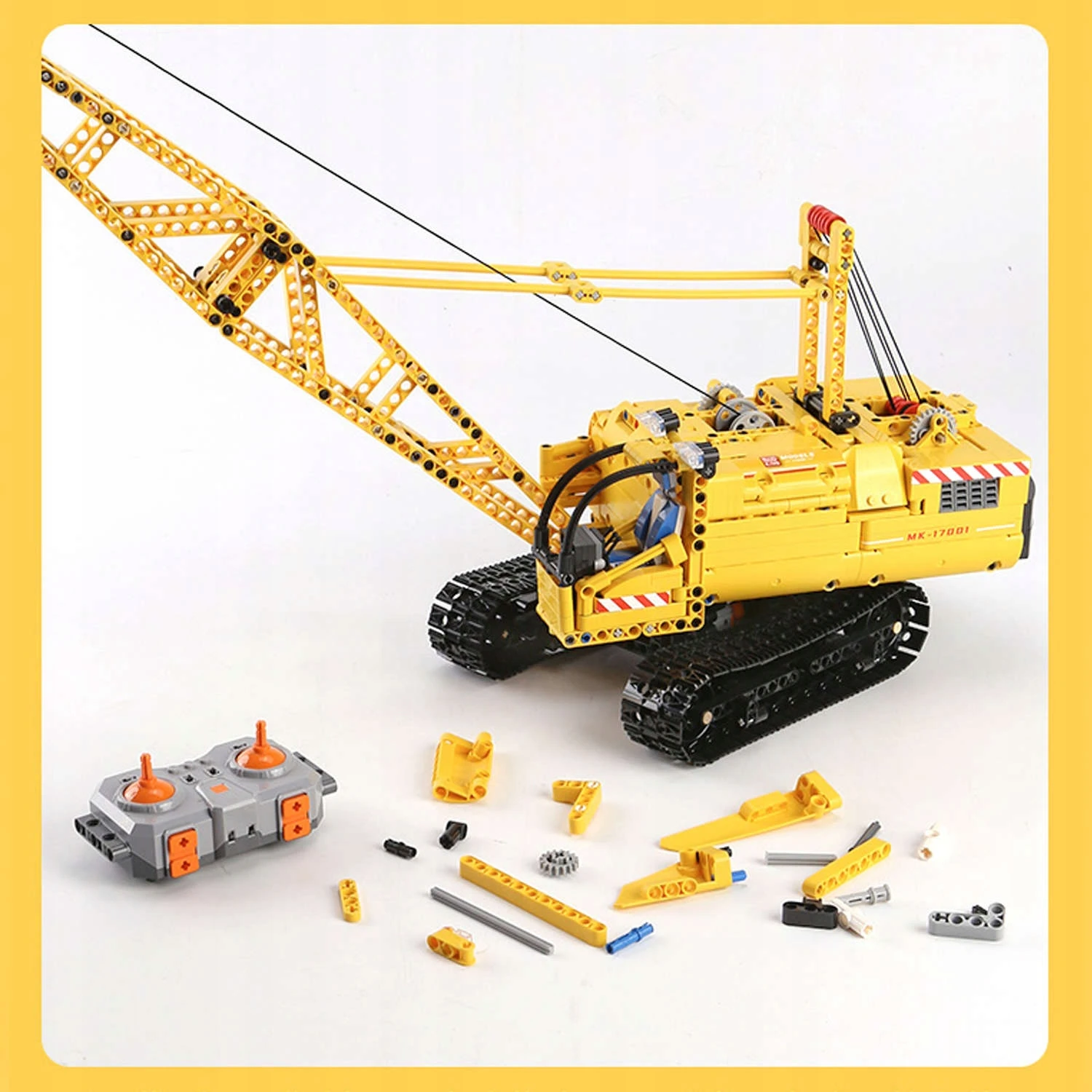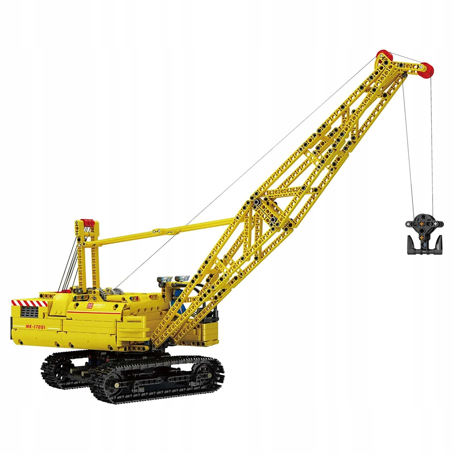 Unikatowy zestaw - zdalnie sterowany dźwig gąsienicowy / żuraw z klocków kompatybilnych z LEGO Technic. Kolekcjonerski model dźwigu gąsienicowego żurawia o numerze katalogowym: 17001.