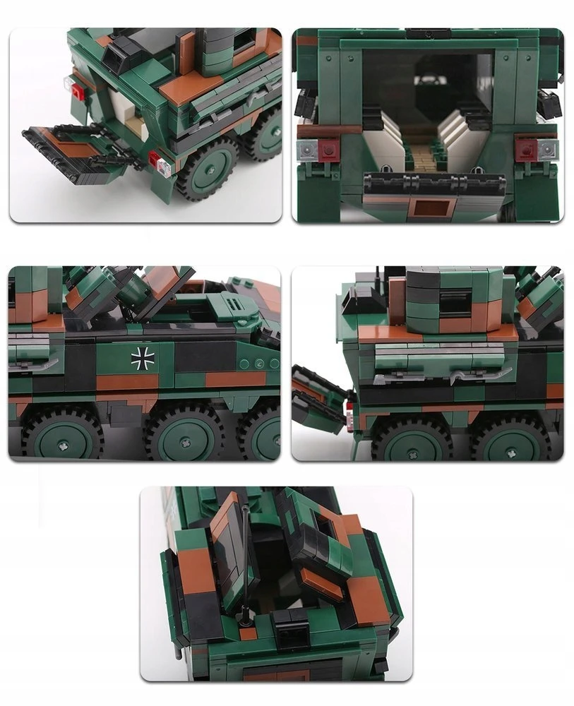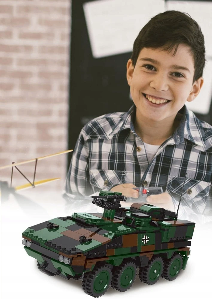Stwórz własne sceny walki z tym wspaniałym transporterem zbudowanym z klocków konstrukcyjnych. Łączy on w sobie pełną emocji zabawę oraz wartość edukacyjną wynikającą ze składania klocków. Jest to świetna propozycja zabawki dla fanów militariów i klocków do samodzielnego składania.