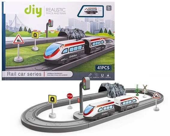 Kolejka dla dzieci z wagonikiem, zestaw 41 elementów