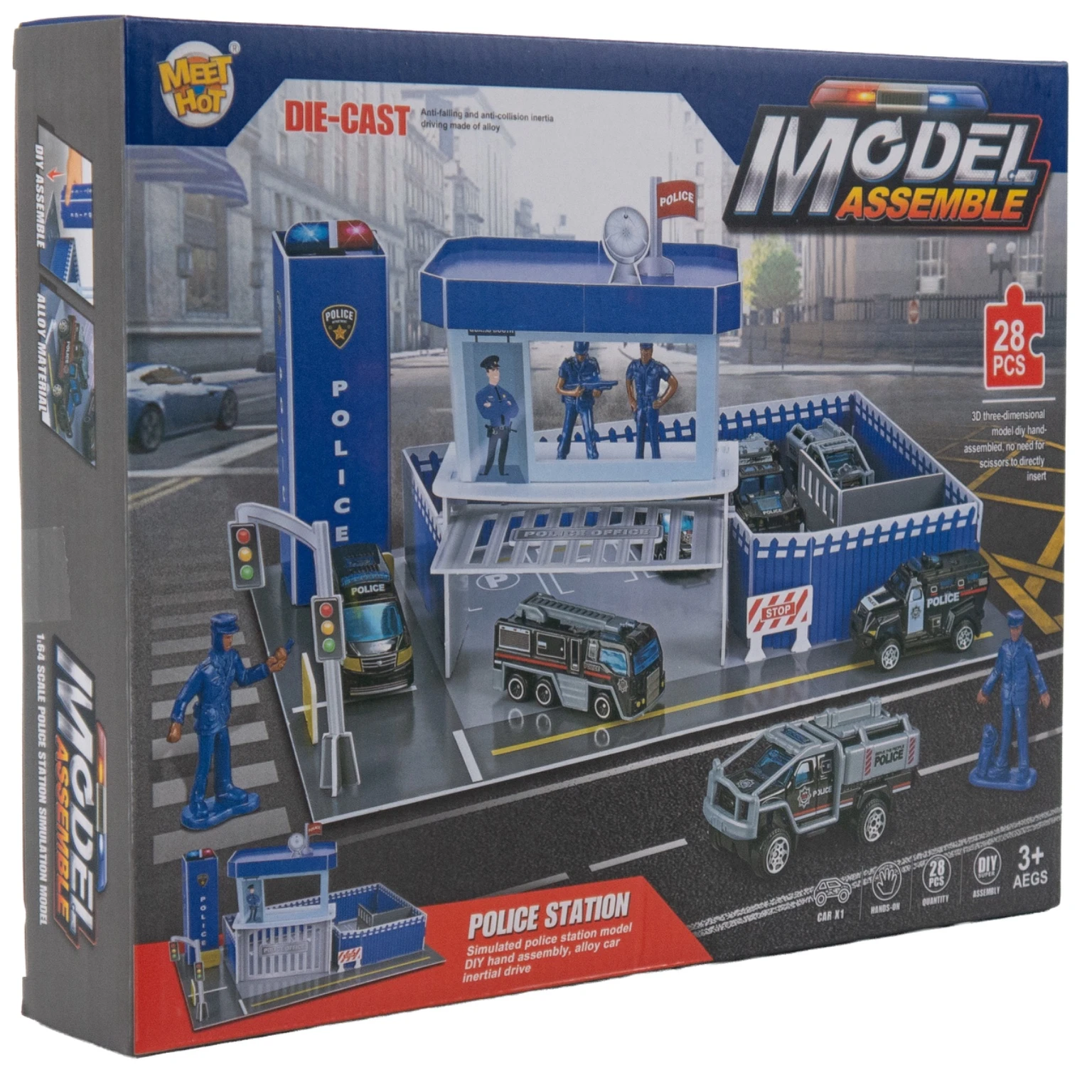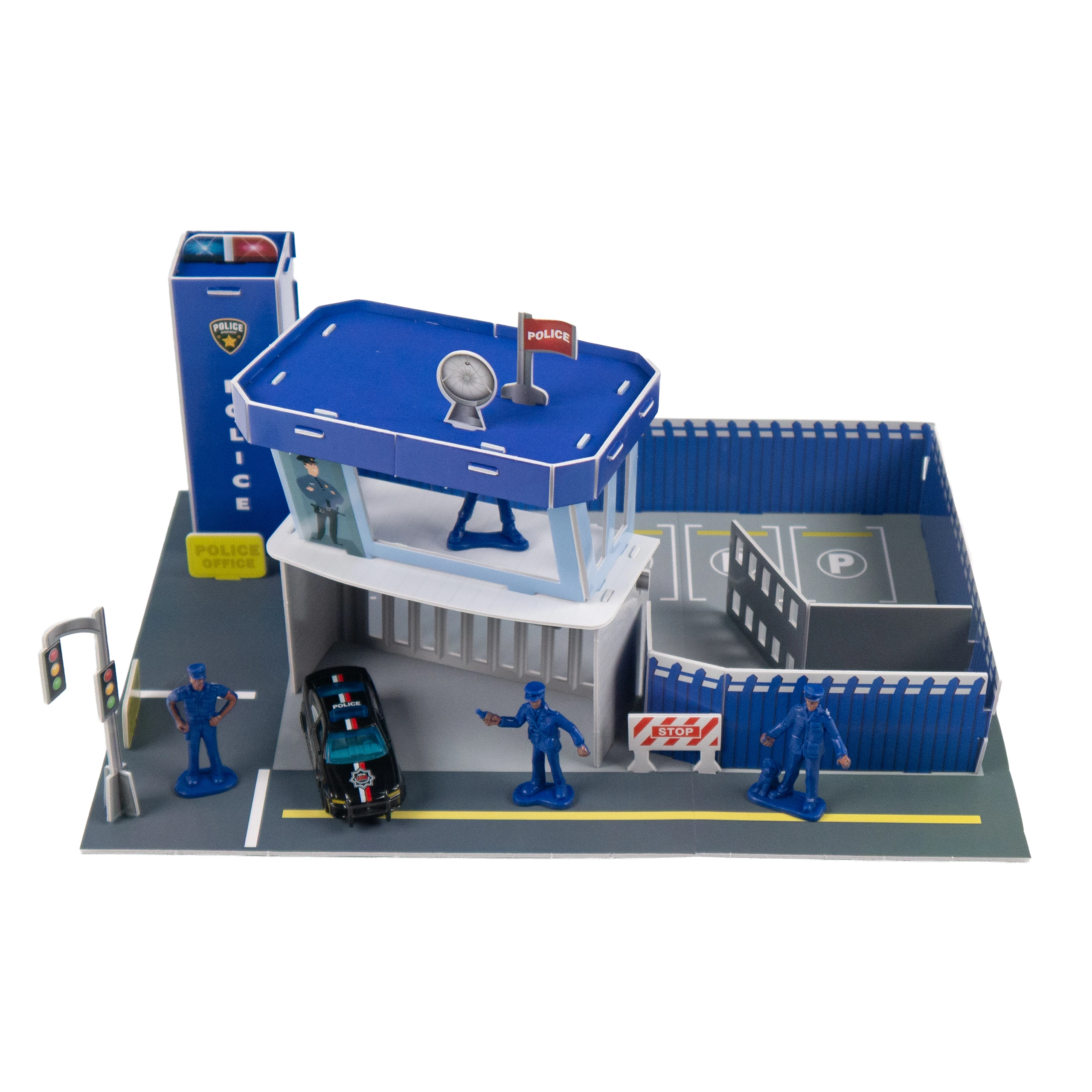 Ten zestaw to pełna akcji zabawa konstrukcyjna - dziecko samodzielnie montuje posterunek policji, strefę parkingową, figurki i akcesoria. Bez kleju, bez nożyczek - wystarczy dziecięca wyobraźnia!