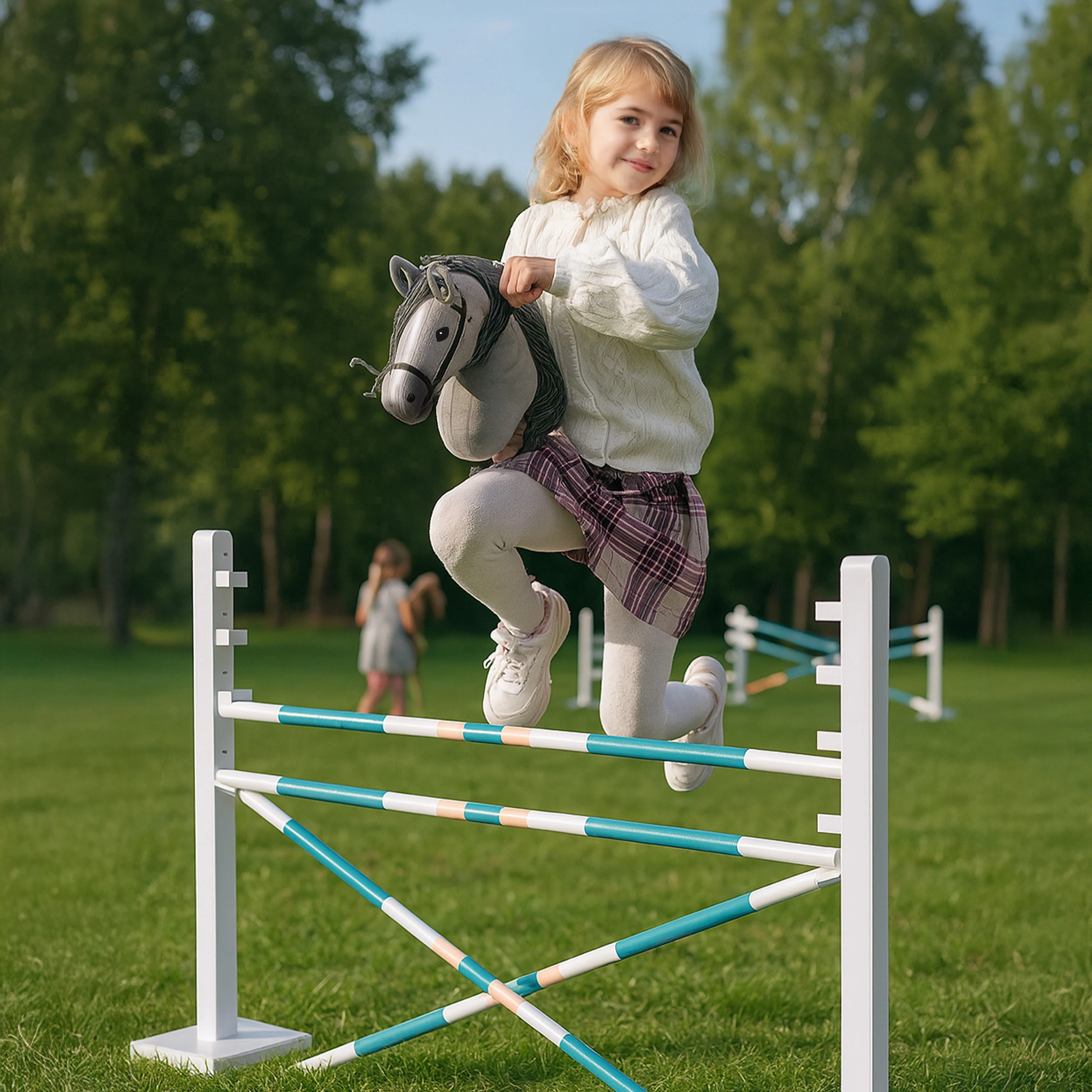 Duży konik na kiju w odcieniu szarości – idealny do zabaw w jeźdźca, skoki przez przeszkody i kreatywne role. Głowa w rozmiarze A3 z realistycznym ogłowiem i lejcem, miękki plusz i solidny kij drewniany – gotowy na podwórkowe galopy i domowe zawody!