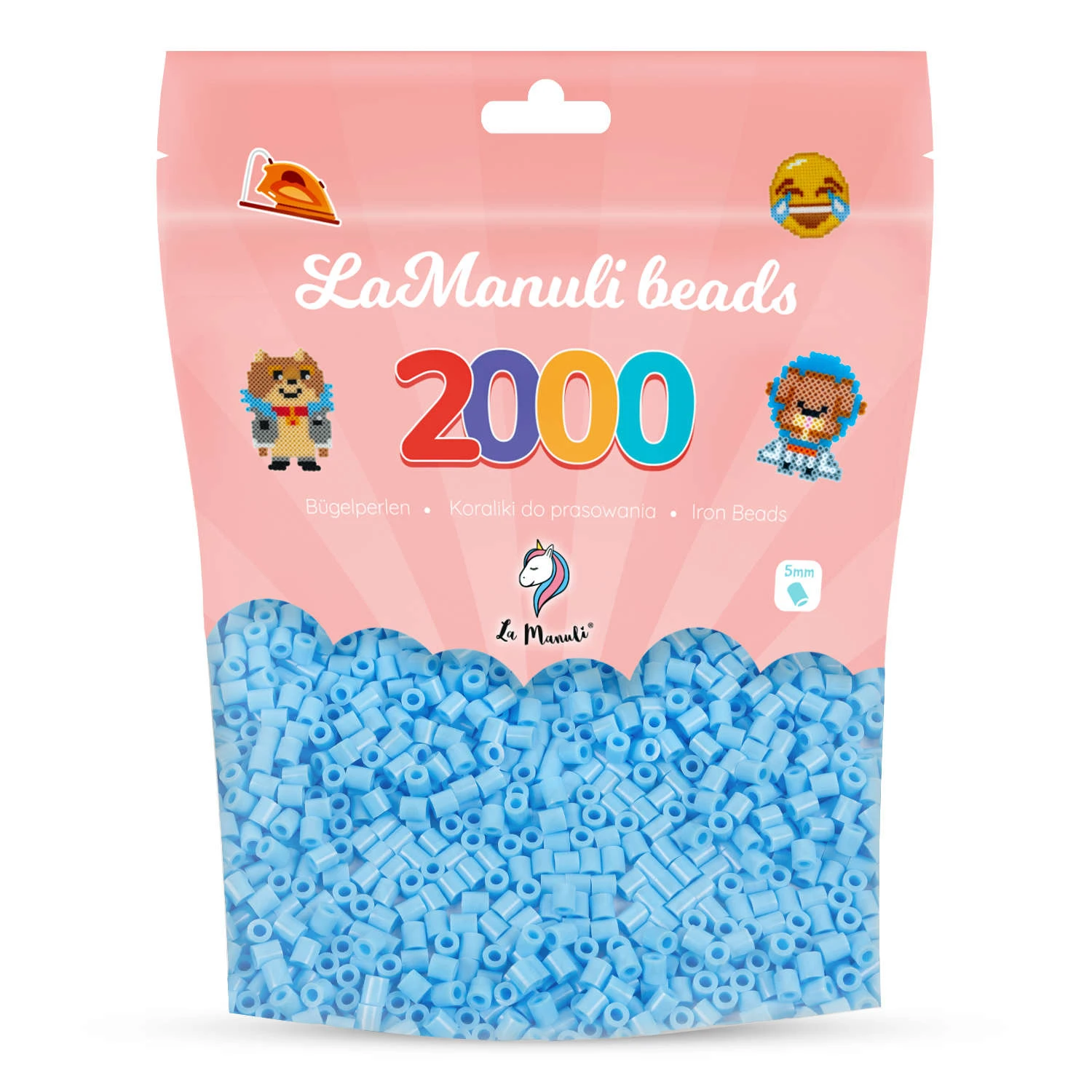Zestaw uzupełniający 2000 koralików La Manuli w jasnym niebieskim kolorze. Koraliki są umieszczone w szczelnie zapinanym woreczku.