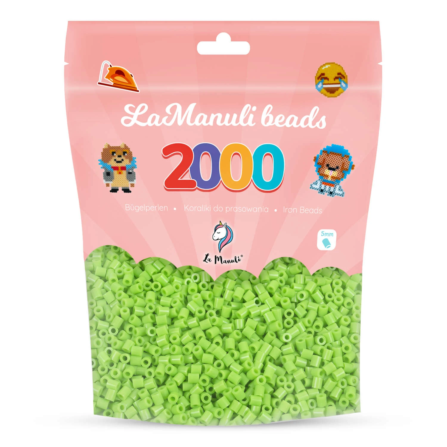 Zestaw uzupełniający 2000 koralików La Manuli w zielonym kolorze. Koraliki są umieszczone w szczelnie zapinanym woreczku.