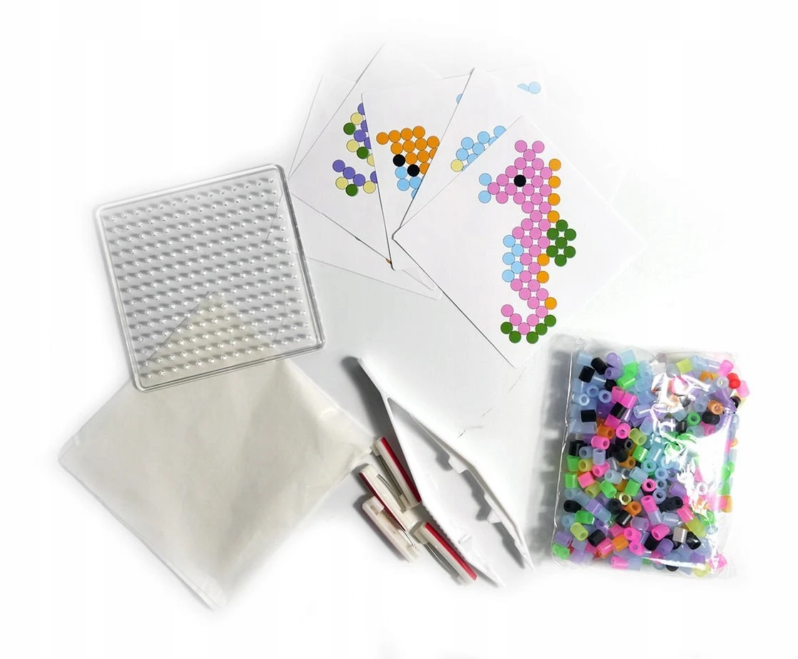 Daj upust swojej kreatywności i stwórz swoje własne wzory lub skorzystaj z naszych szablonów i twórz kolorowe projekty. Niewykorzystane koraliki nawlecz na nitkę i stwórz własnoręczny naszyjnik z kolorowych korali.