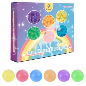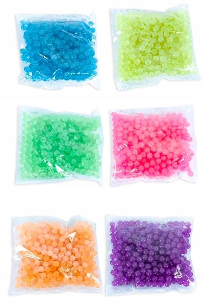 Zestaw 1800 koralików wodnych w 6 świecących w ciemności kolorach. Zainspiruj się do stworzenia całkiem nowych wzorów.