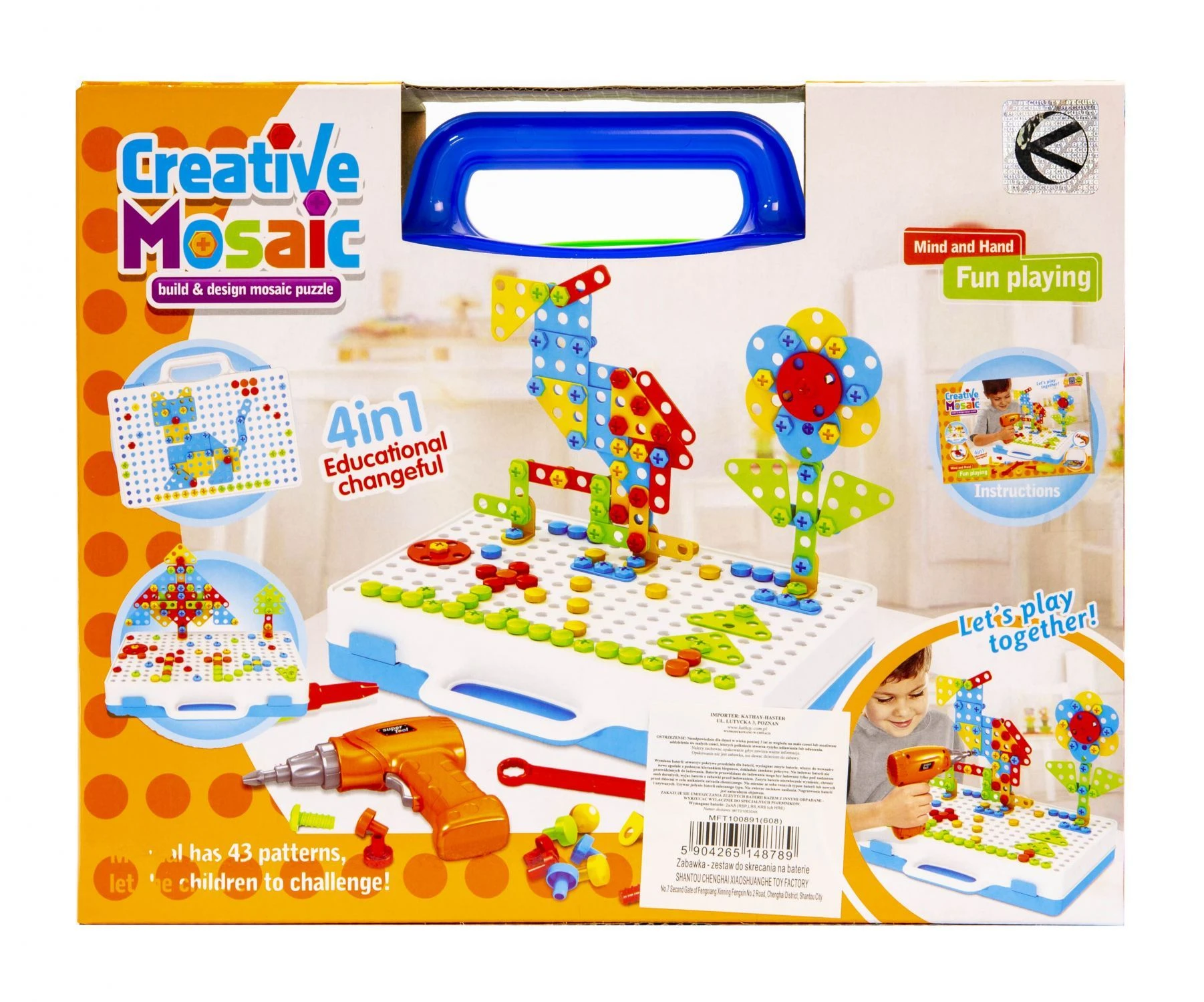 Ten produkt to marzenie każdego małego majsterkowicza! W zestawie znajduje się wiele kolorowych elementów o różnych kształtach, które pomogą w rozwijaniu wyobraźni oraz kreatywności dziecka. W zestawie znajduje się 237 elementów w tym dołączony został klucz francuski, śrubokręt a także wkrętarka na baterie. Elementy mogą zostać przykręcone zarówno przy pomocy dołączonych narzędzi, jak i własnoręcznie, co rozwija zdolności manualne dziecka.