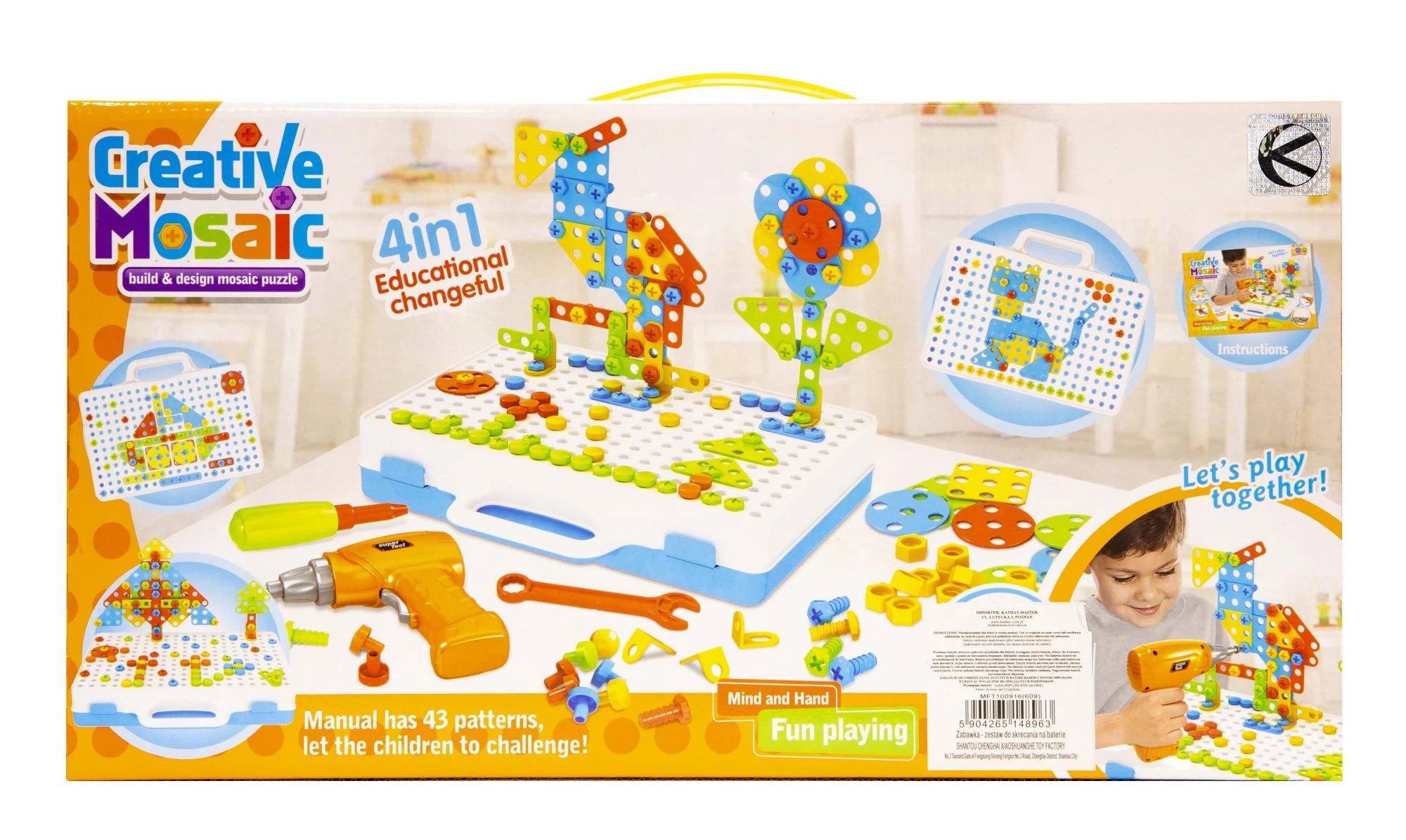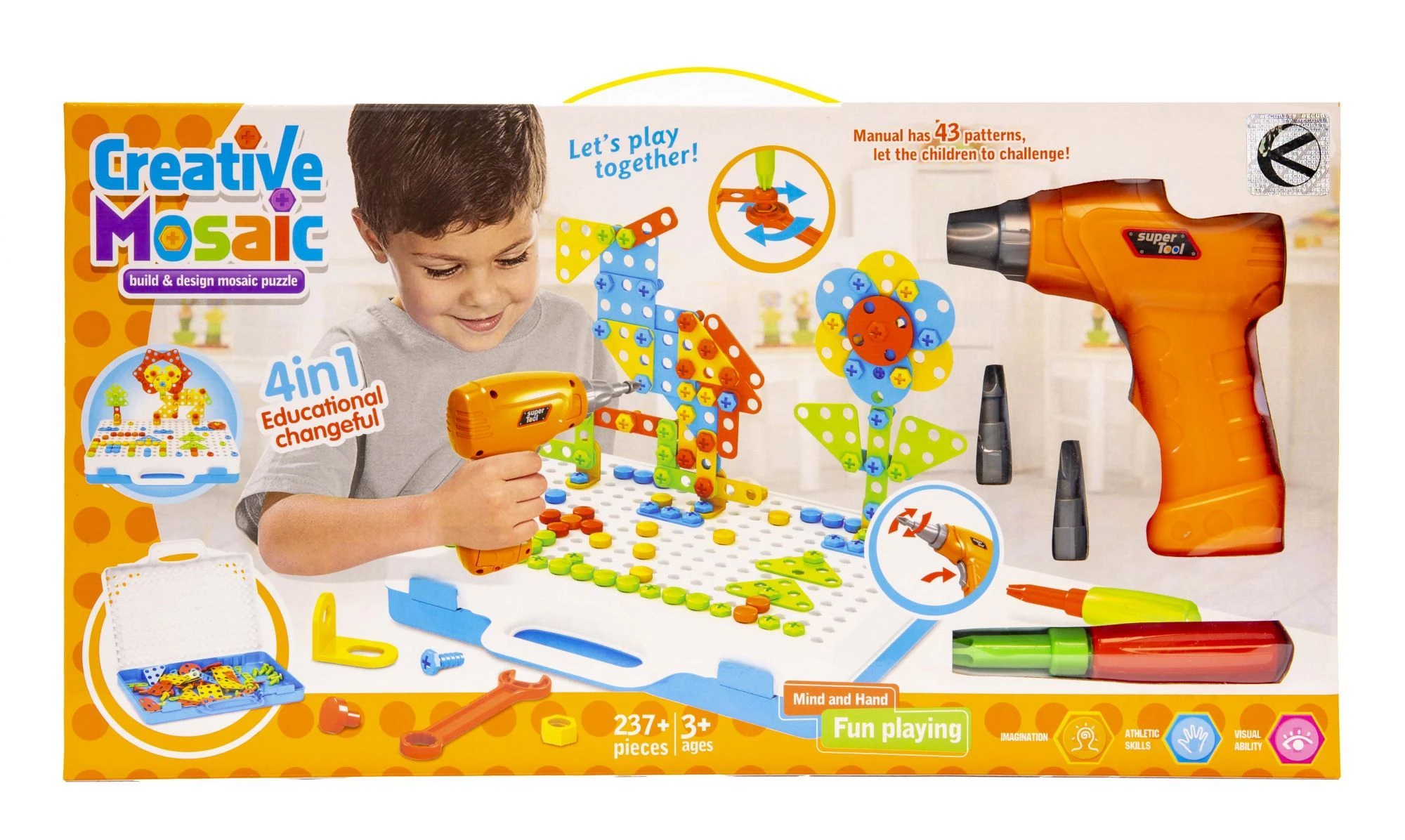 Ten produkt to marzenie każdego małego majsterkowicza! W zestawie znajduje się wiele kolorowych elementów o różnych kształtach, które pomogą w rozwijaniu wyobraźni oraz kreatywności dziecka. W zestawie znajduje się 237 elementów w tym dołączony został klucz francuski, śrubokręt a także wkrętarka na baterie. Elementy mogą zostać przykręcone zarówno przy pomocy dołączonych narzędzi, jak i własnoręcznie, co rozwija zdolności manualne dziecka.