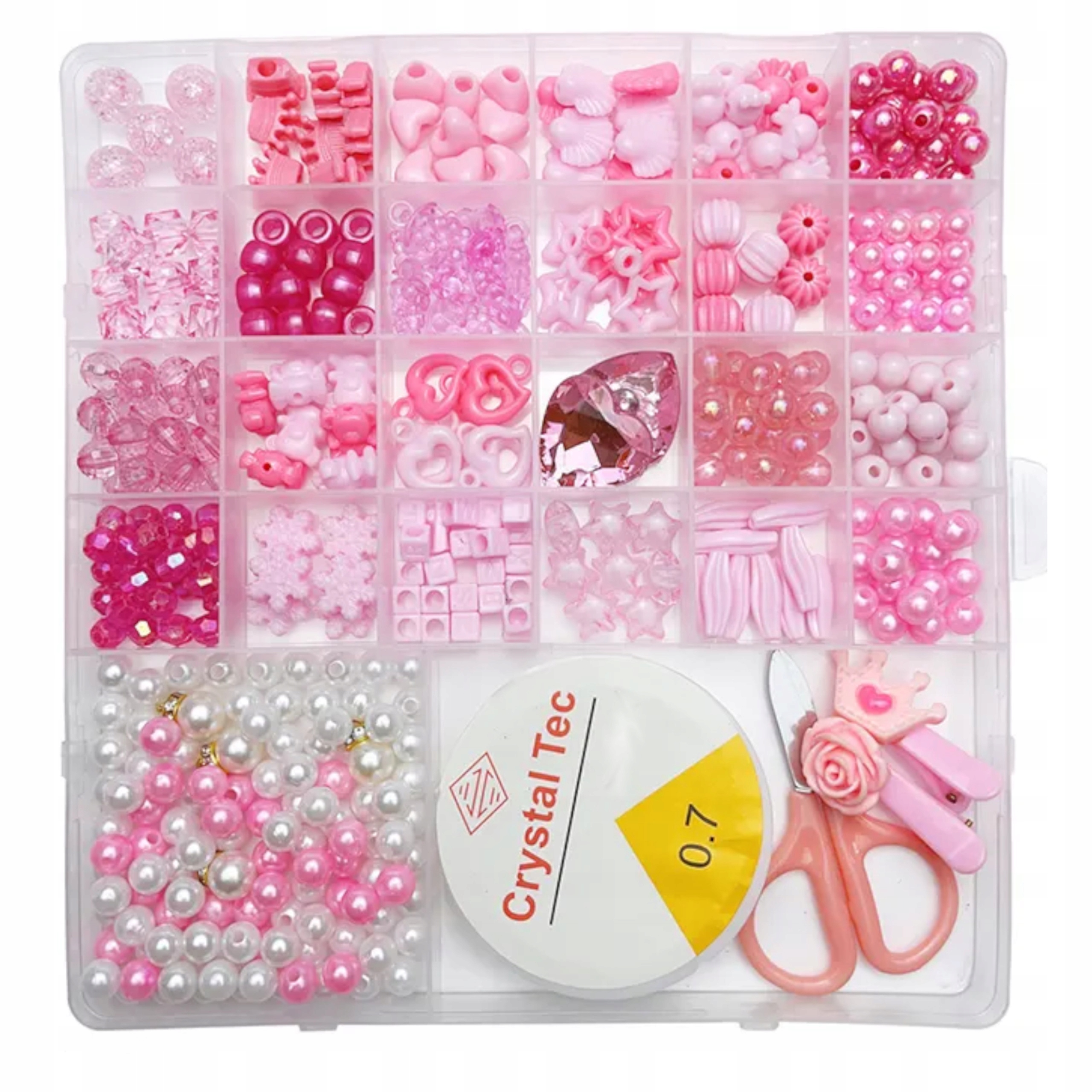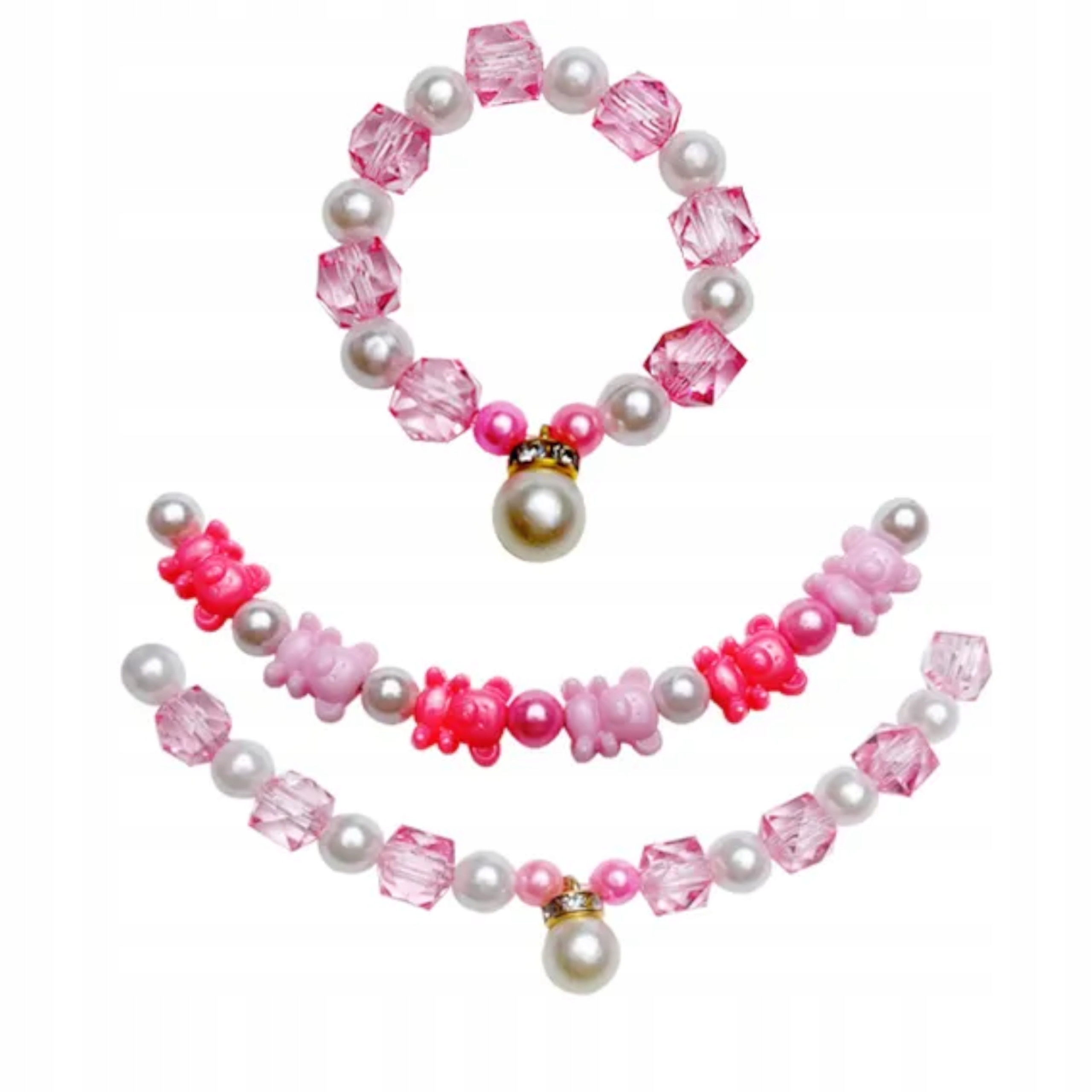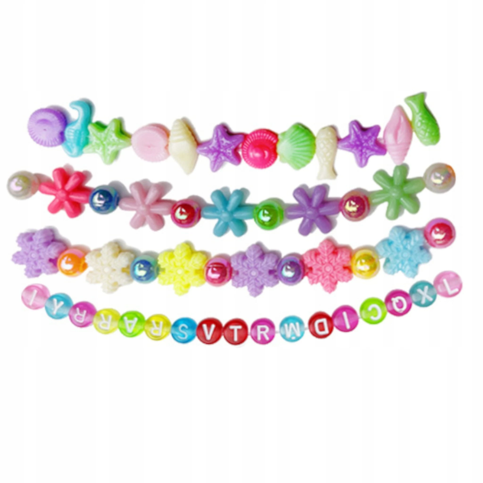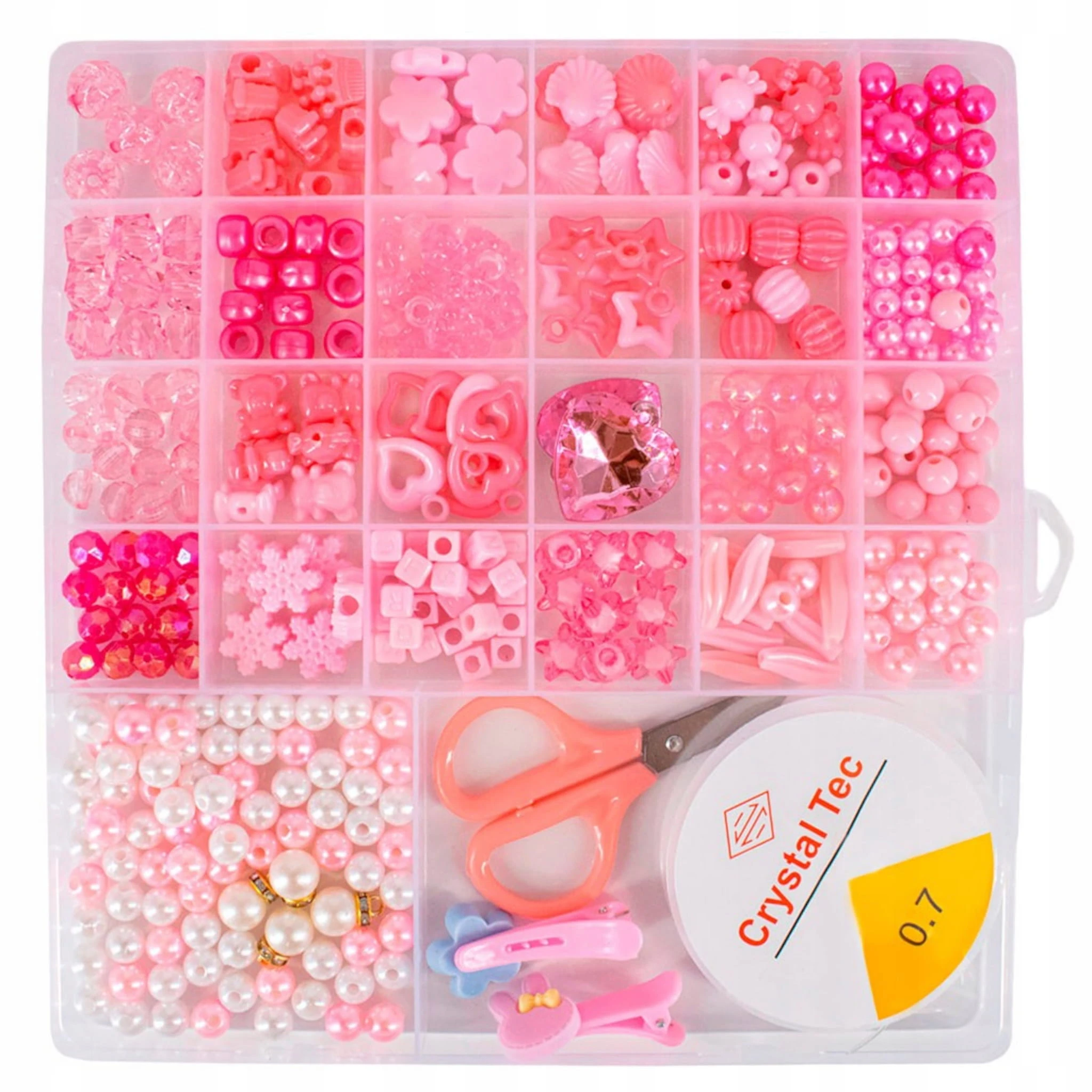 Kreatywny zestaw zawiera około 300 elementów, co pozwoli na wykonanie wielu różnych elementów biżuterii takich jak bransoletki czy naszyjniki. W komplecie są także nożyczki i żyłka do nawlekania koralików, dzięki czemu zawiera wszystko co potrzebne, aby zacząć tworzyć własne projekty.