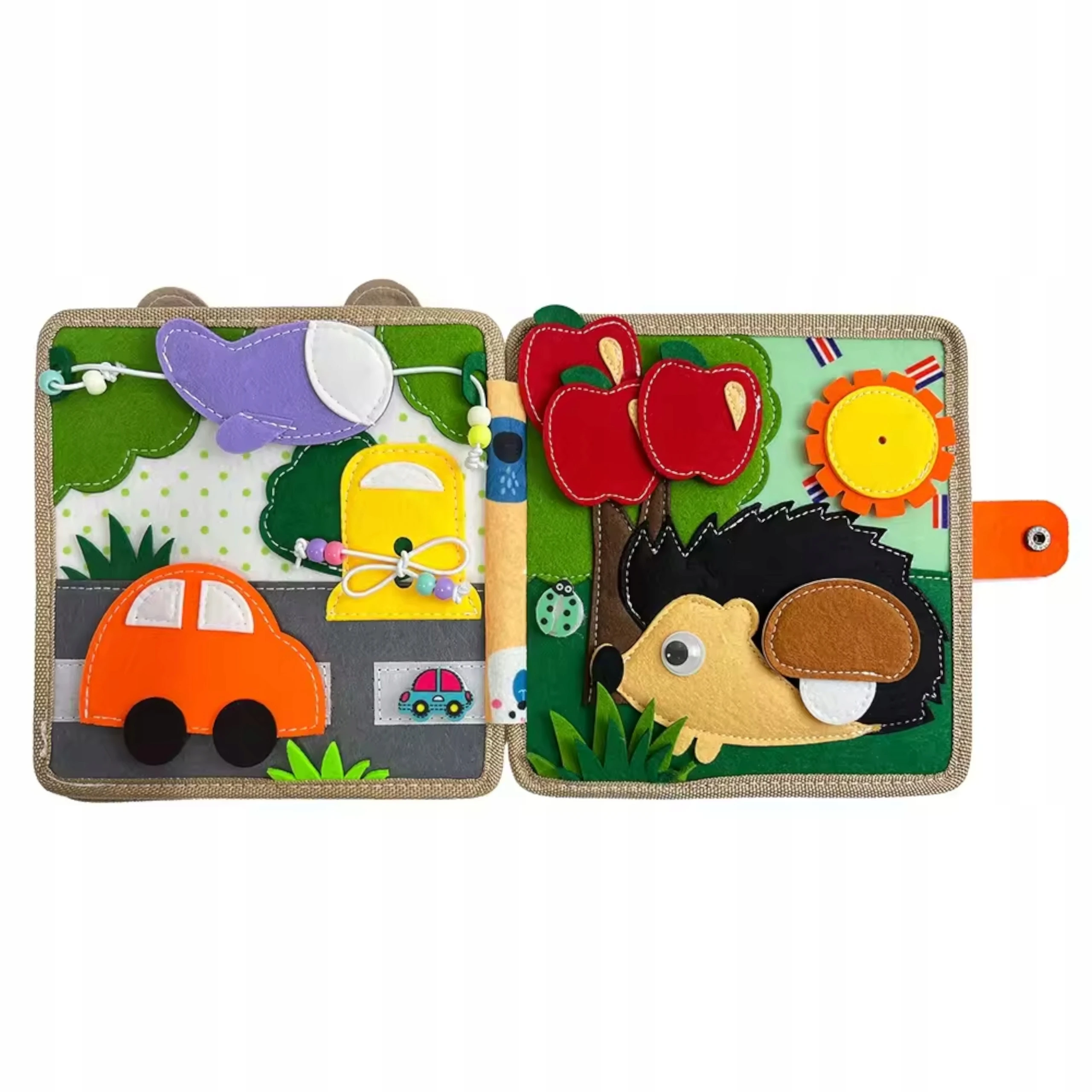 Książeczka i jej elementy wykonane są z przyjemnego, trwałego i wytrzymałego filcowego materiału.