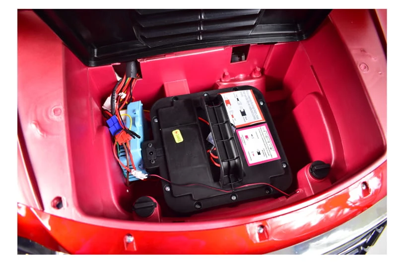 Po zdjęciu pokrywy silnika, mamy wejście do ładowania oraz walizkę z akumulatorami: